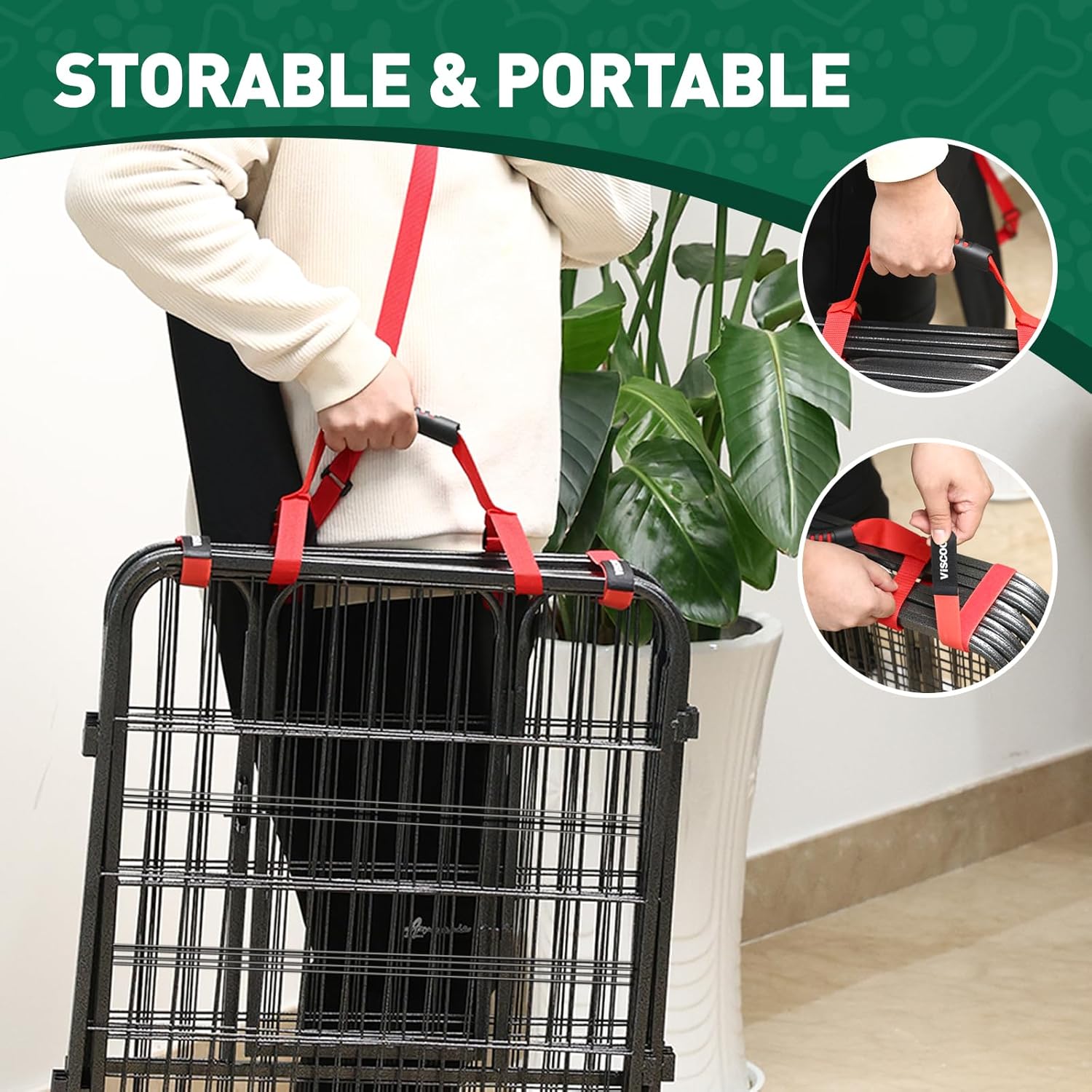 🐶 【Easy to Assemble and Fold】Easy to assemble and fold: The dog fence can be assembled without the use of other tools. This product adopts a pole connecting rod design, which is easy to assemble and disassemble. The set includes eight Velcro buckles and two portable straps for organizing fence debris, as well as an iron pole storage bag.