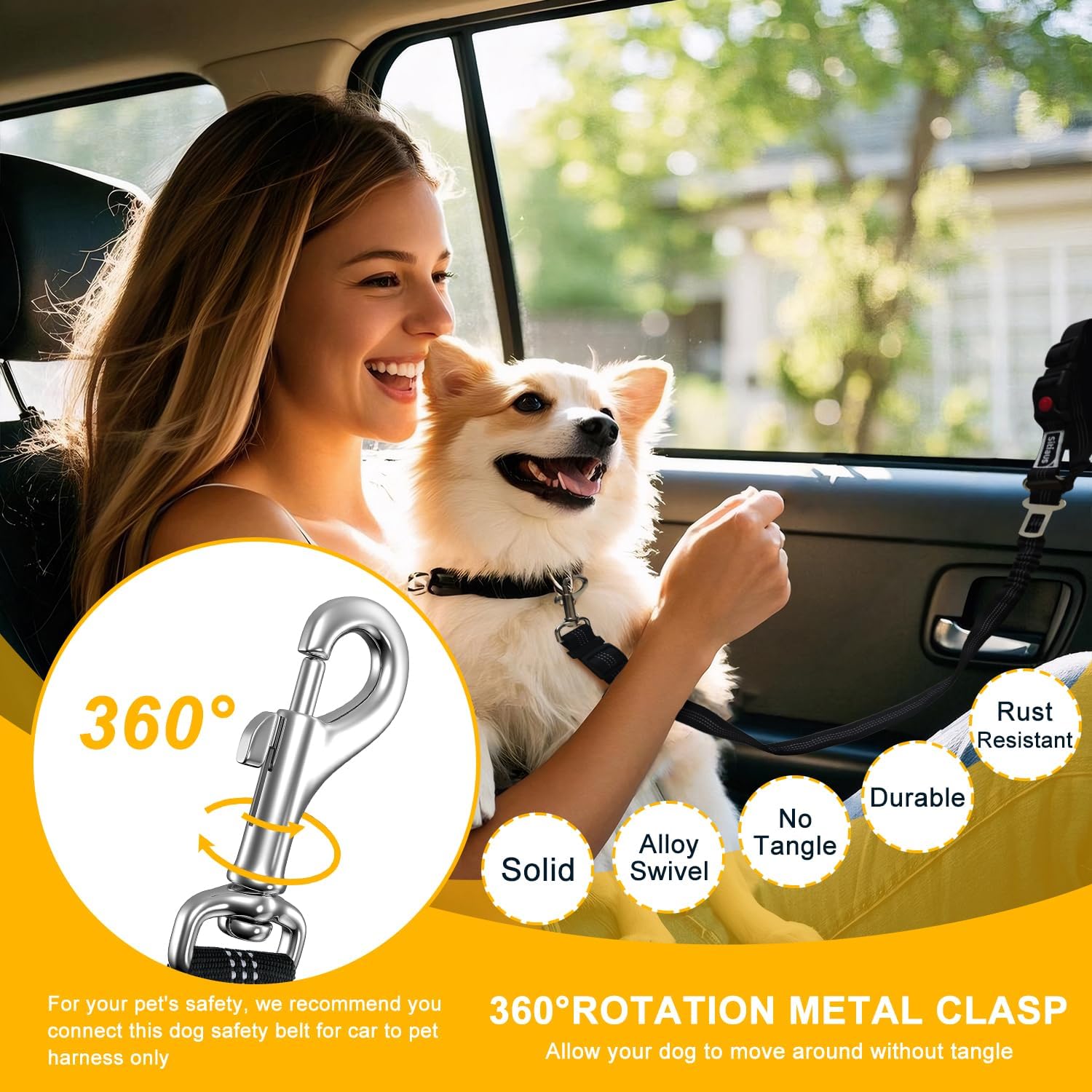 360° SWIVEL CLIP, TANGLE-FREE & ADJUSTABLE, HASSLE-FREE TRAVEL FOR YOUR DOG! – Equipped with a 360° swivel clip and quick-install headrest attachment, our design prevents tangling and ensures easy setup in seconds. Sitiaus dog seat belt makes your dog enjoys comfortable movement while staying securely in place during travel.