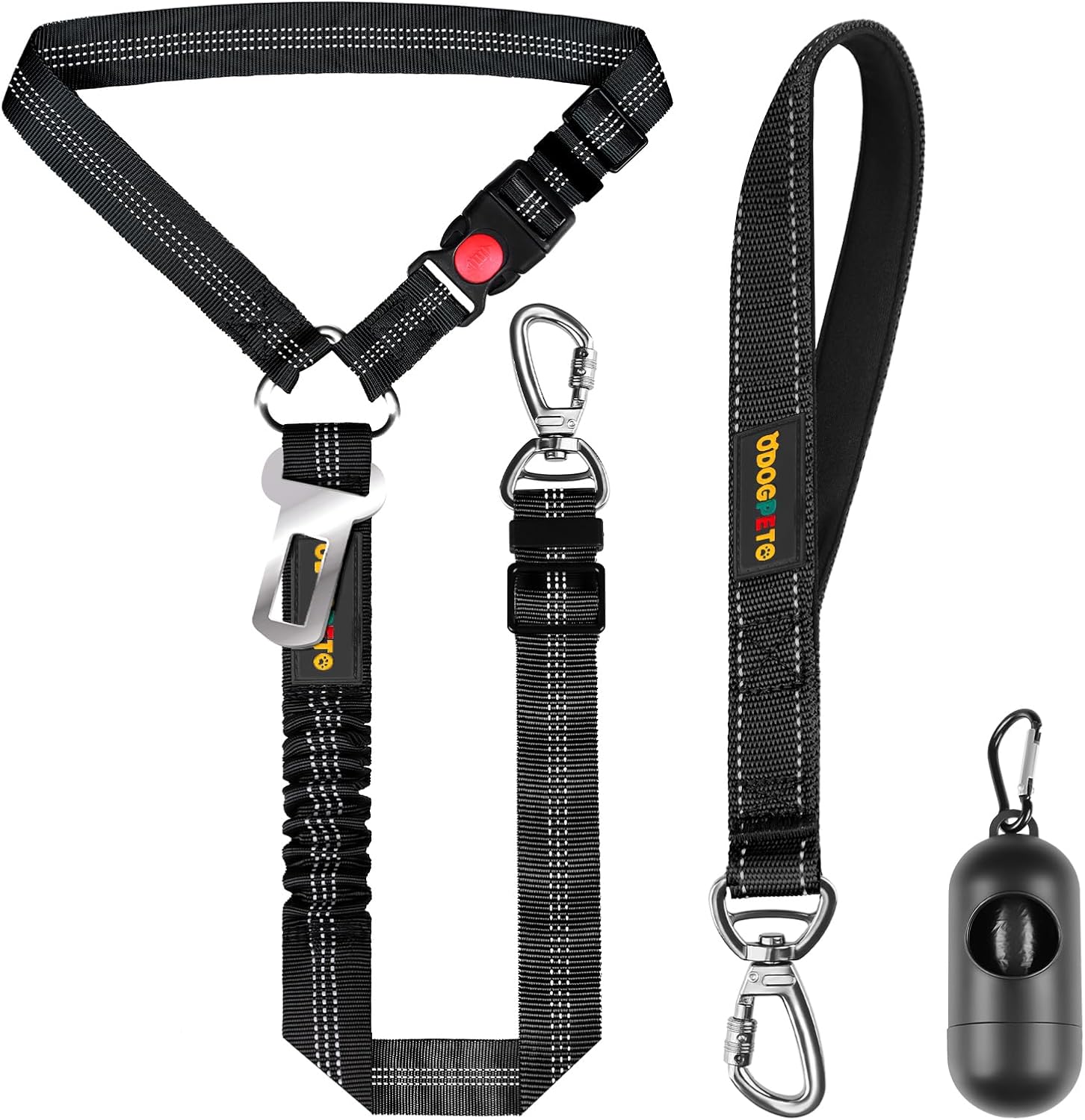 360-degree Locking Carabiner: Safety is our top priority, which is why we’ve equipped our short dog leash and dog seat belt with premium 360-degree locking carabiners. The 360-degree rotatable clasp keeps your dog acting freely without strangling or tangling. Our innovative locking design enhances security for both pets and drivers, minimizing the risk of accidents or escapes