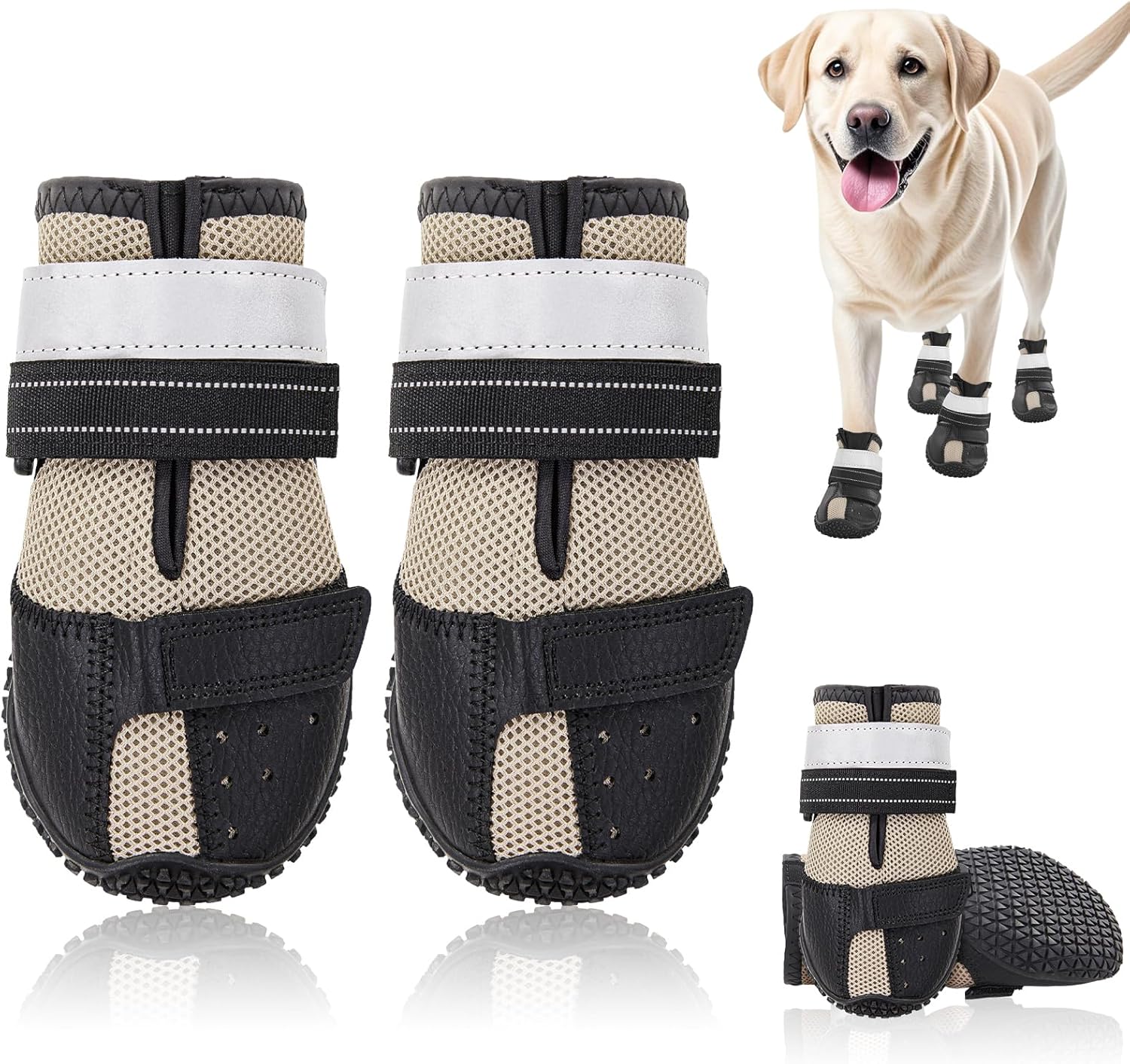 Dog Shoes for Large Dogs, Breathable Dog Booties for Hot Pavement, Anti-Slip Rubber Dog Booties Paw Protectors with Reflective Strap for Outdoor Walking Hardwood Floor Hiking, Size 6
