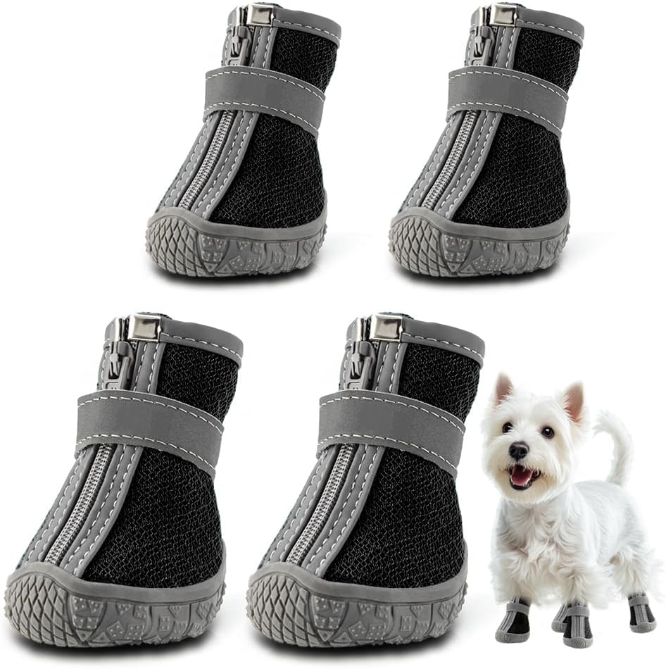 Dog Shoes for Small Dogs, Breathable Dog Boots Paw Protector for Hot Pavement Winter Snow, Dog Booties with Reflective Strips Rugged Anti-Slip Sole for Hardwood Floors Walking Black Size 1