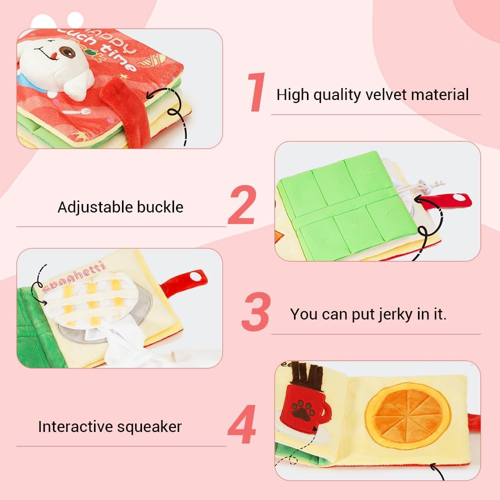 1. Plush: The dog treat dispenser mat looks like a book and looks cute. Each page is eye-catching and bright in different colors, and not easy to shed.