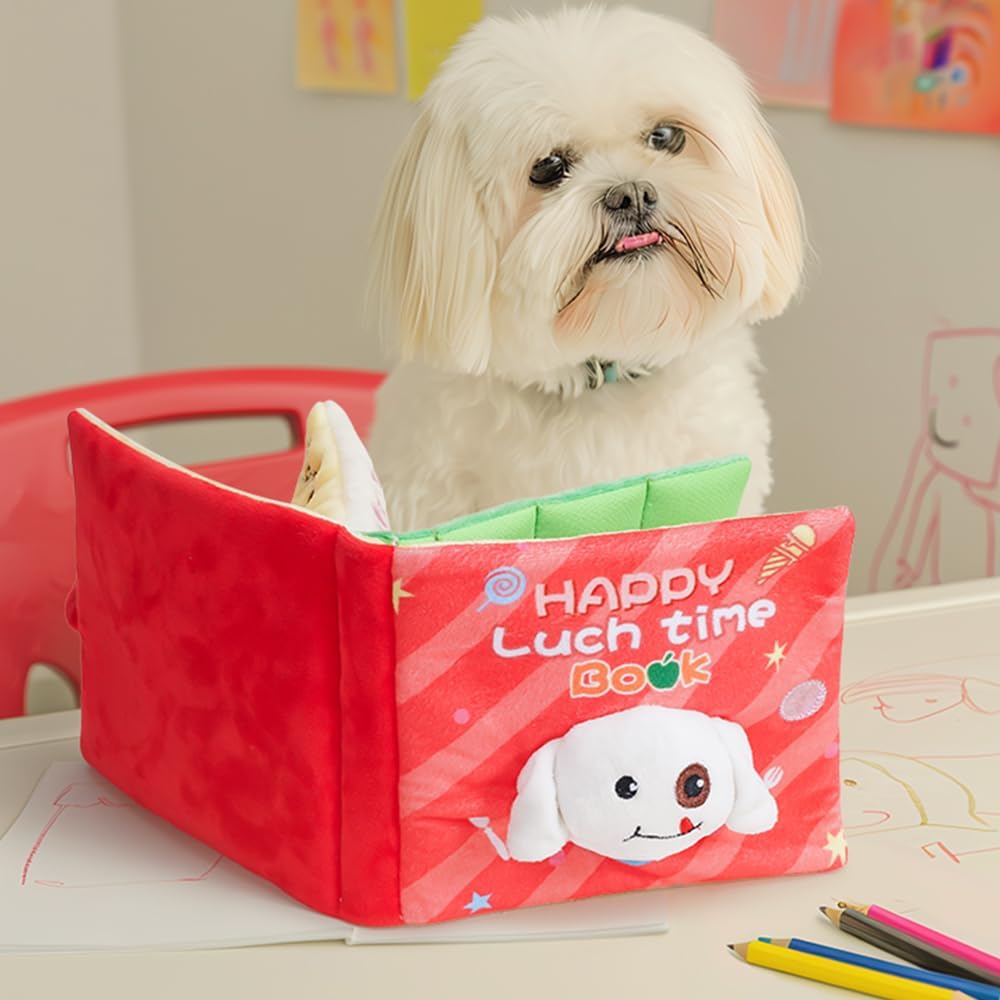 Plush: The dog treat dispenser mat looks like a book and looks cute. Each page is eye-catching and bright in different colors, and not easy to shed.