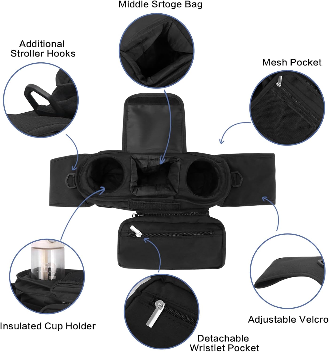 Stable Installation: Dog stroller storage bag is equipped with fixing straps, suitable for most pet strollers with handlebars ranging from 14 inches to 19 inches in width. It can be securely fixed to the dog stroller, ensuring that it won’t slip or spill drinks even on bumpy roads, making your beloved dog’s outings safer and more stable.