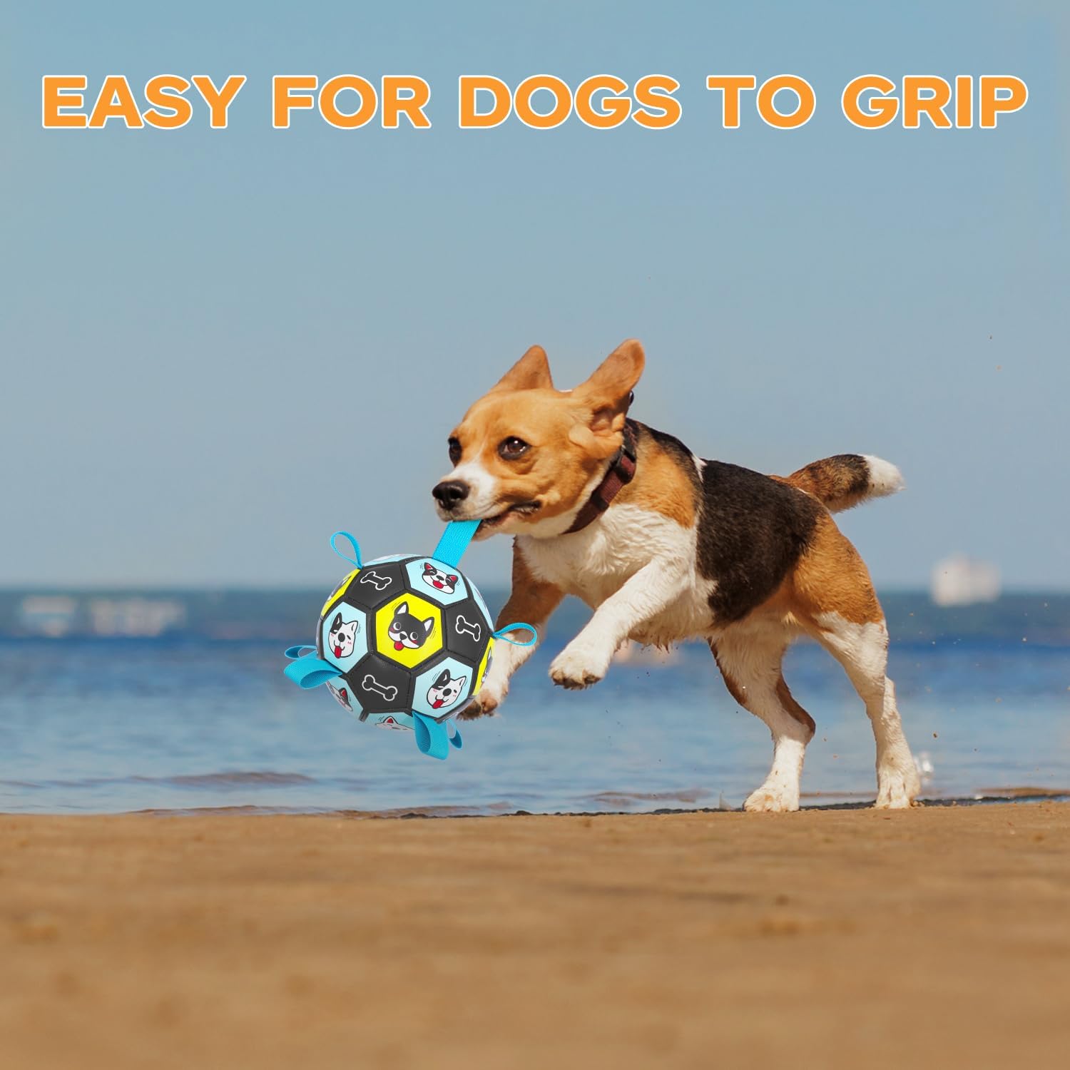 Dog Toy Soccer Ball with Straps, Herding Ball for Dogs, Outdoor Interactive Dog Toy, Dog Fetch Toy, Ideal for Medium & Large Dogs, Great Puppy Birthday (6 Inch)