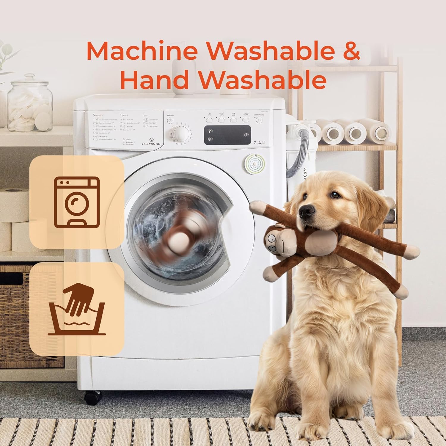 【CUTE MONKEY DESIGN】Stretchable arms & legs for tug-of-war fun, keeping dogs curious and active