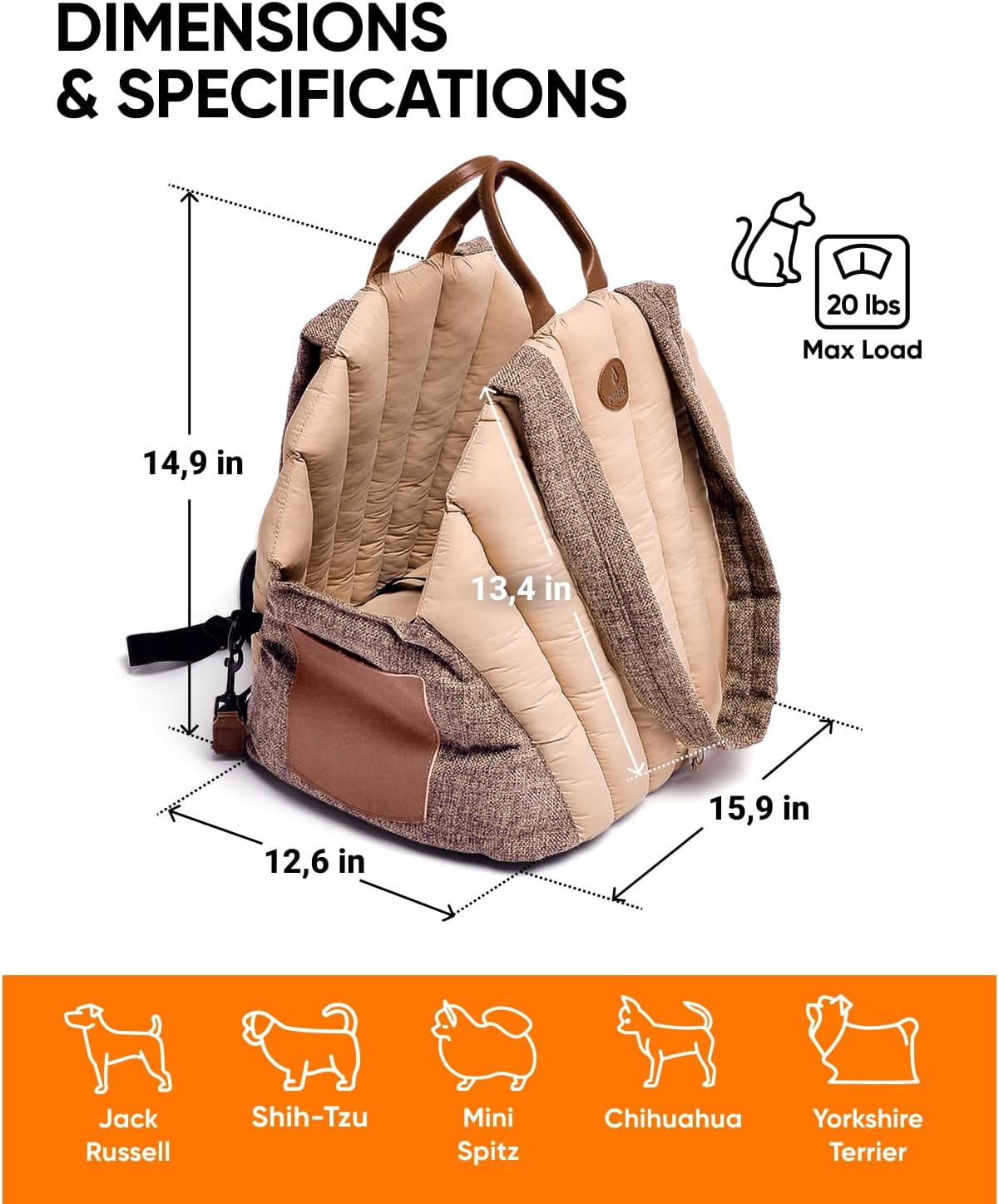 LIGHT, DURABLE, BREATHABLE. Suede-look eco-leather, 600D Oxford, and rubber bottom hold shape. The straps to put over the shoulders are extra durable. Works as refined cat carrier and sleek dog travel bag. Skip flashy carriers for timeless style.