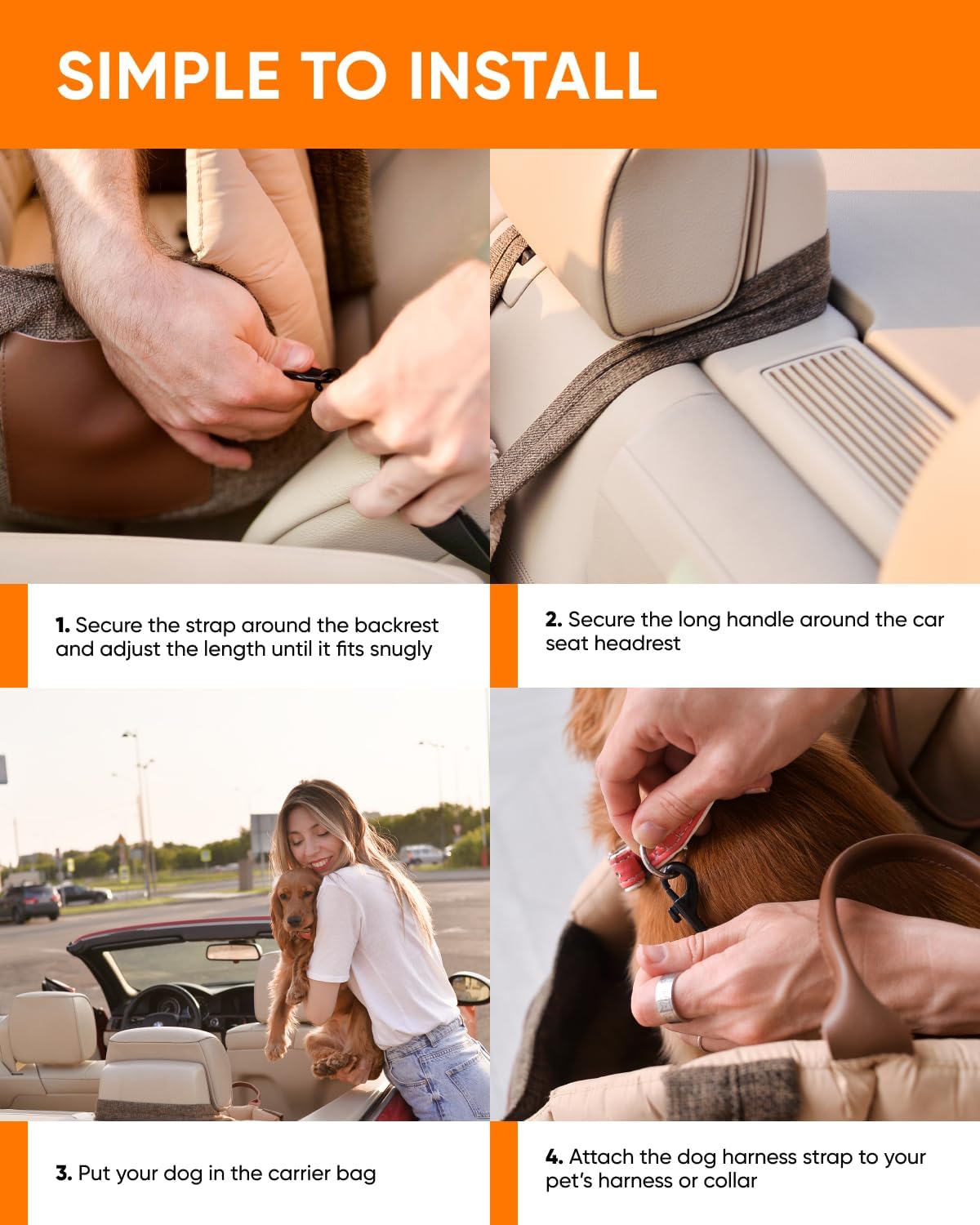 CAR-SEAT SAFE & STABLE. Secure to the seat, clip the interior tether, and enjoy smoother rides. Use as a dog travel bag, a compact pet carrier for dogs, and a soft sided cat carrier for 20 lb large cats when bulky boxes won’t do. ADD TO CART NOW