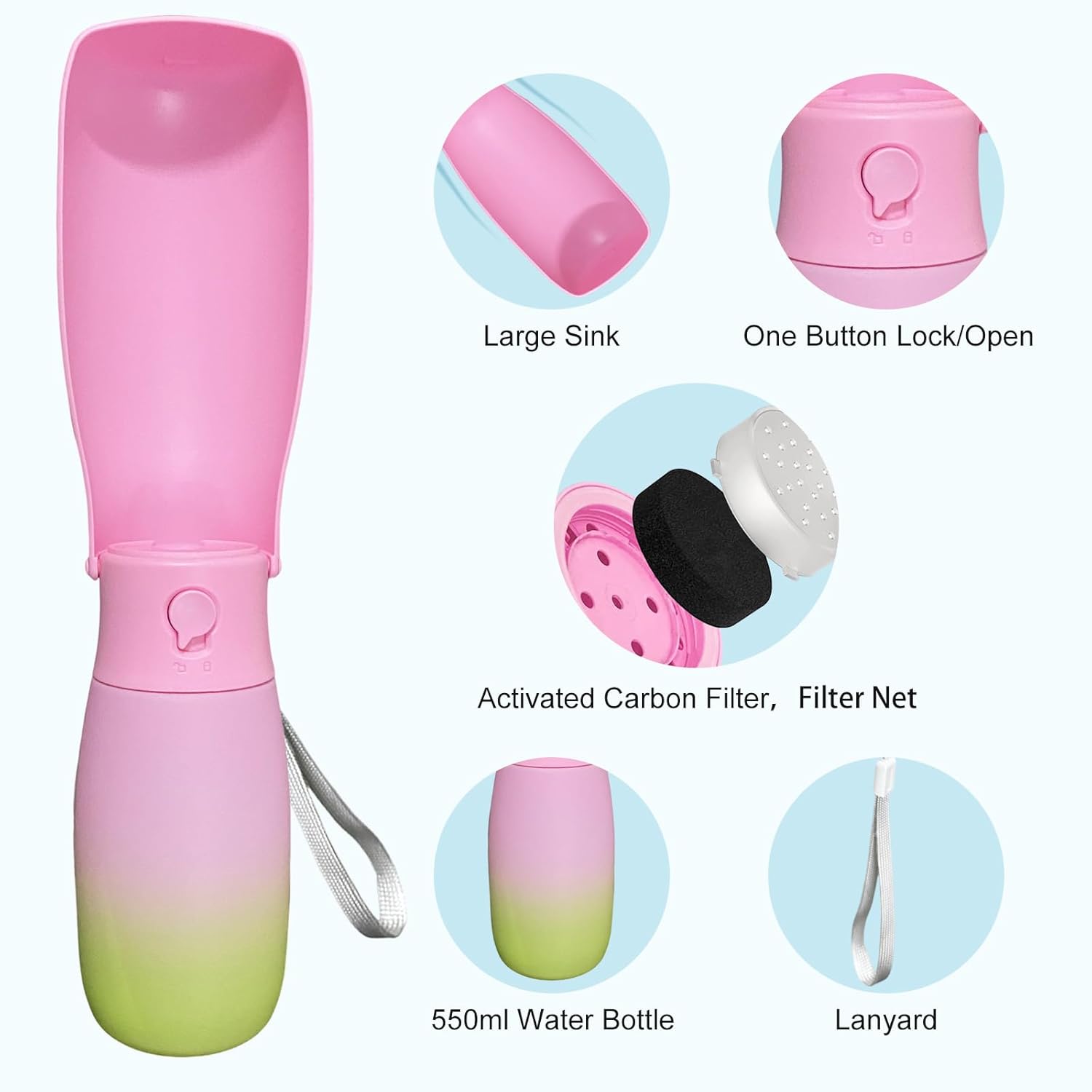 Dog Water Bottle Portable – Food Grade Material BPA Free, 19Oz Leak Proof Pet Water Bowl Dispenser, Travel Puppy Accessories for Outdoor Walking Camping, Dogs Birthday Gifts (Pink&Green)