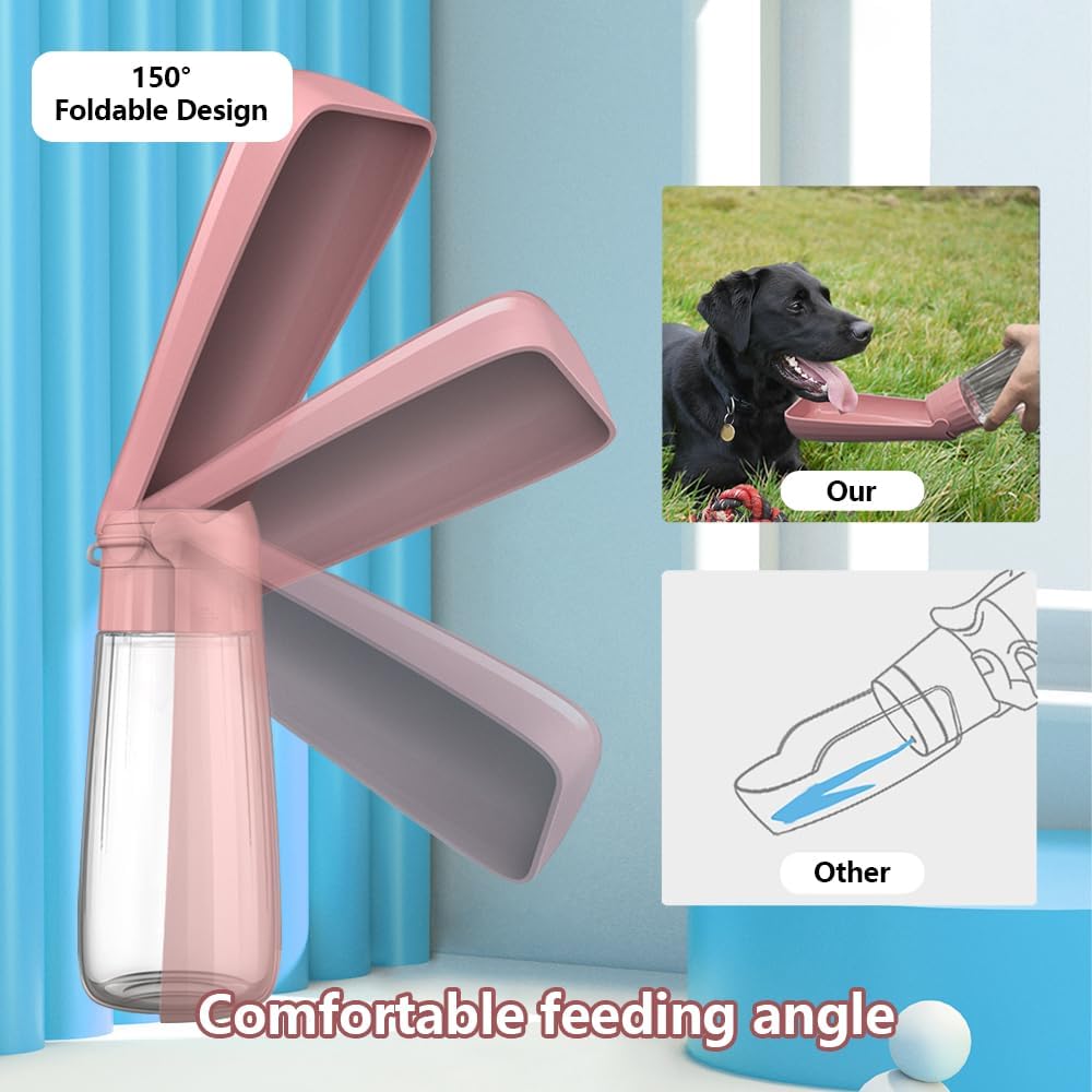 Dog Water Bottle Portable for Walking Pet Travel 19 OZ Leak Proof Water Bottle Bowl with Drinking Feeder Cat Puppy Water Dispenser for Hiking Camping Pink