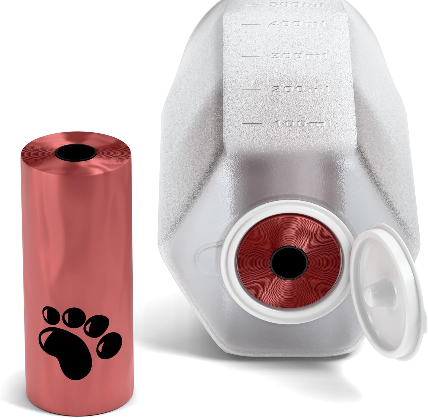 【3-in-1 Dog Water Bottle】Innoshopp dog water bottle can hold max 20 ounces of water and 100g food. It provides both clean water and fresh food when you go out with your pets. Built-in poop bag at the bottom of the water bottle to keep the environment clean.