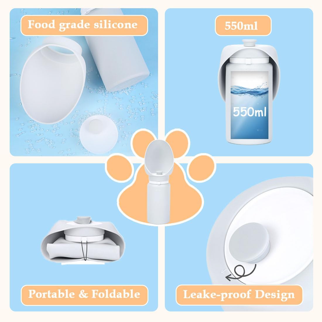 【Easy to Clean】Silicone material can be cleaned directly with water, easy to maintain and keep clean, and keeps pets healthy. The water bottle is a must-have for pets when they are out and about
