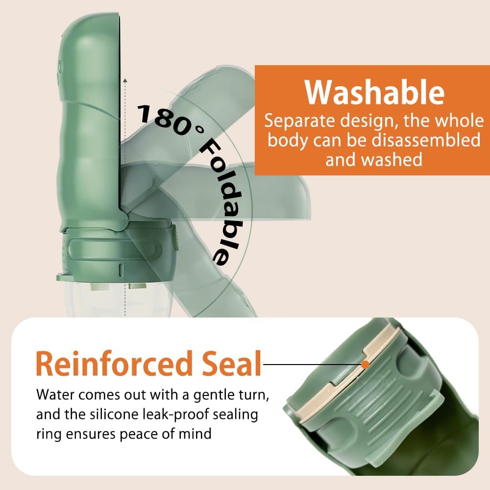 Dog Water Bottle with Food Container, Leak Proof and Lightweight Water Bottle for Dogs, Foldable Portable Pet Dispenser, Outdoor Water Dispenser for Puppy,Cat,Dog for Walking, Hiking, Travel, Green