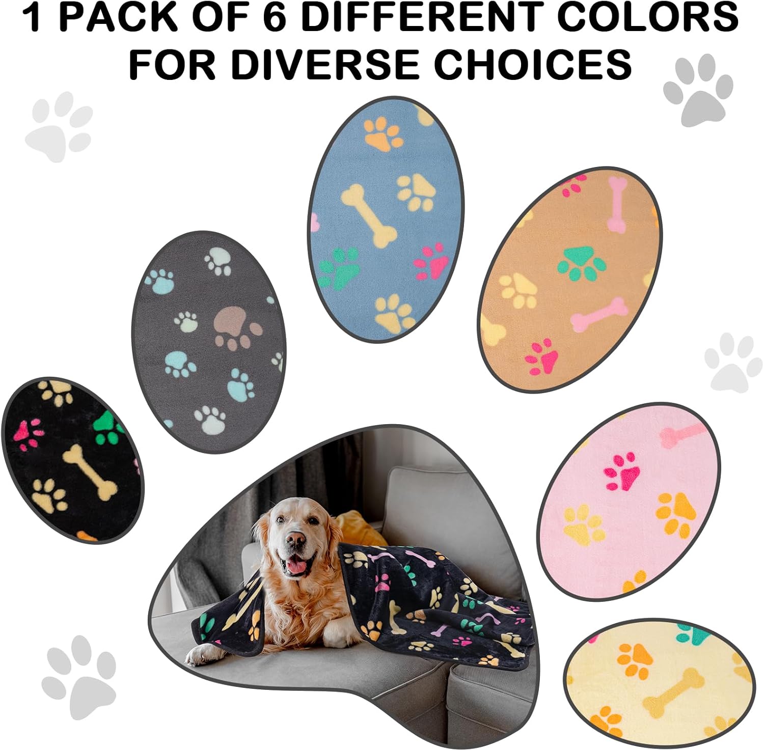 Dono 1 Pack 6 Blankets for Dogs, Soft Fluffy Paw Print Pattern Fleece Pet Blanket Warm Sleep Mat Cute Print Design Puppy Kitten Blanket Doggy Mat for Dog Cat Kitten Doggy