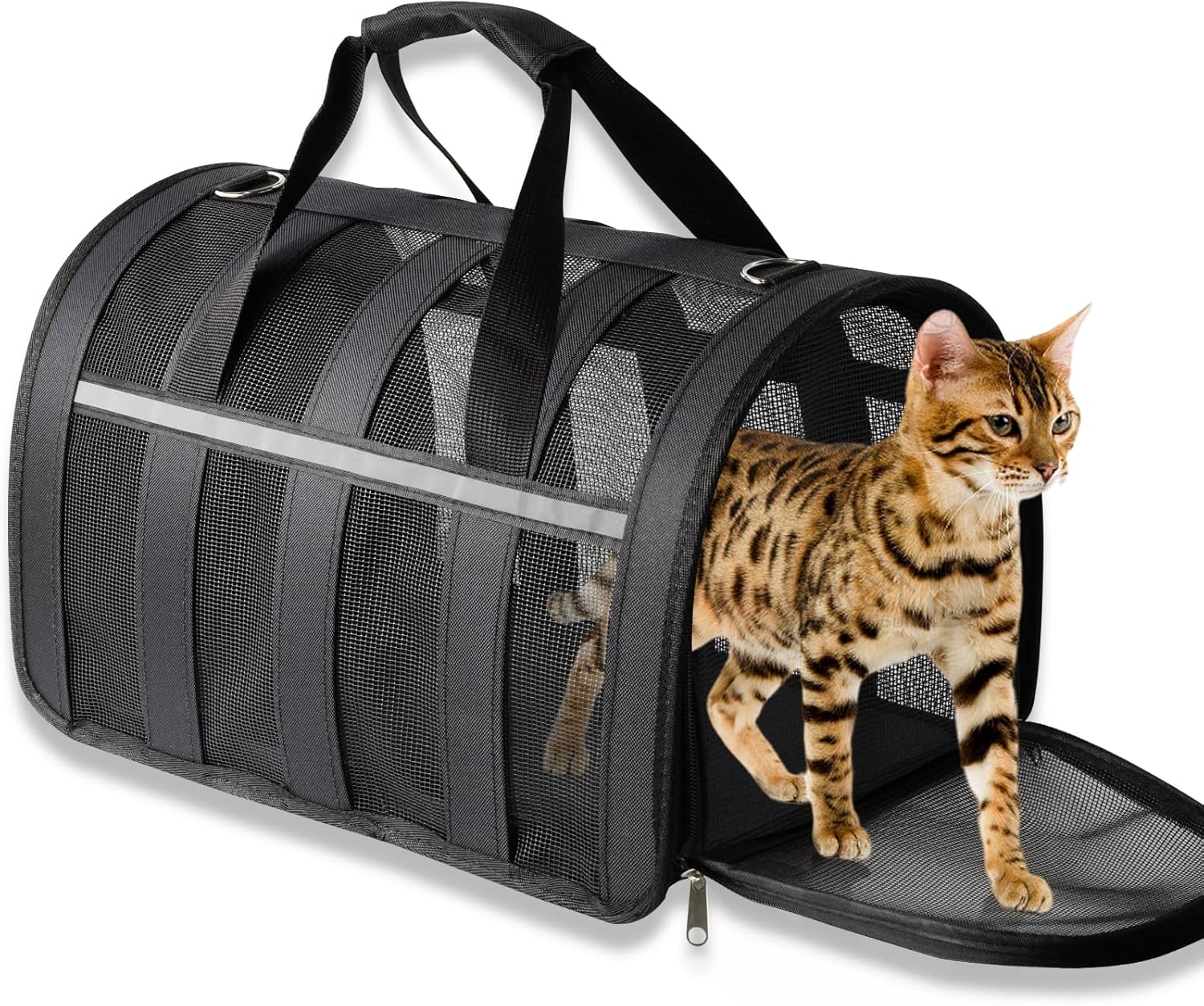 EXCELLENT VENTILATION&VISIBILITY: Comes with 5 breathable mesh windows and 6 ventilation holes on 4-side of the cat backpack, to provide plenty of air and great view for your pet. With zippers on both top and front, your lovely pets can be put in and out of the carrier backpack easily