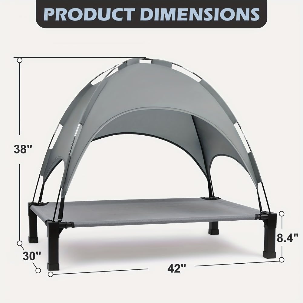 Elevated Dog Bed with Canopy – Portable Outdoor Cooling Cot for Dogs & Cats, Removable Shade Tent, 42″ x 30″ x 8″, Gray, Perfect for Camping & Relaxing