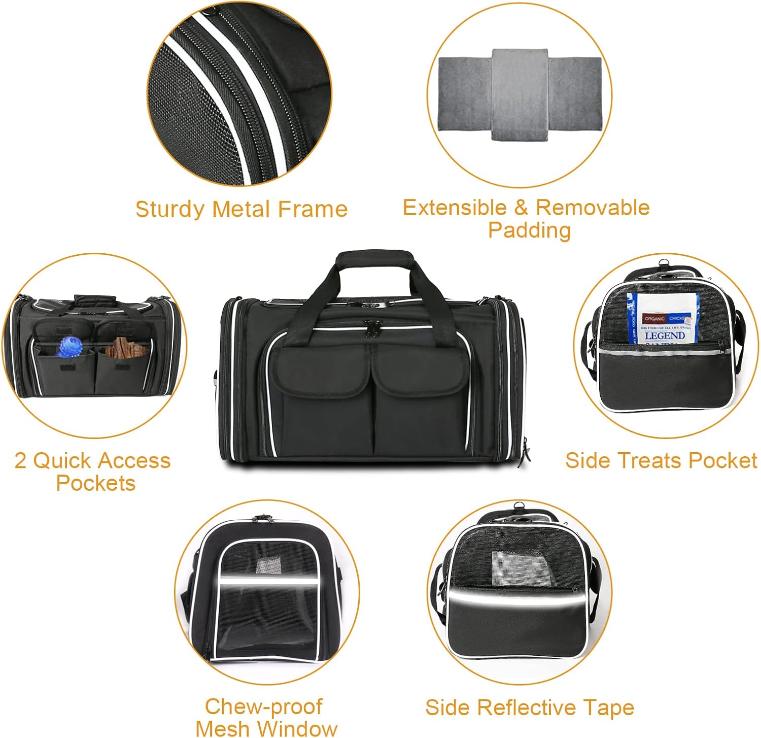 Estarer Soft Sided Pet Carrier Airline Approved, 4 Sides Expandable Collapsible Cat Carrier with Pockets & Removable Fleece Pad, Travel Carrier Bag for Cat Dog & Small Animals (Black)
