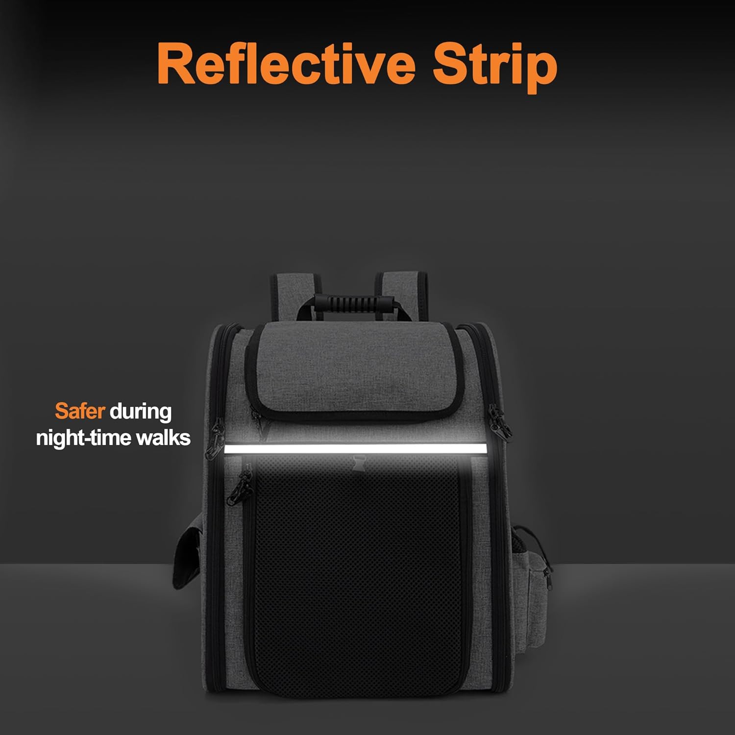 🐱🐶【Expandable Design for Larger Pets】The backpack features a zippered expansion at the back, increasing space to accommodate larger cats or small dogs. When expanded, the size is 42cm x 28cm x 60.5cm, providing more comfort for your furry friend.