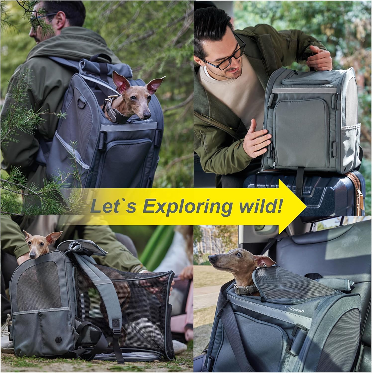 Expandable Pet Carrier, Airline-Approved Foldable and Detachable Backpack, Fits 13lbs Cat&11lbs Small Puppy Dog, for Car Travel,Camping and Emergency Transportation and Shelter (Grey)