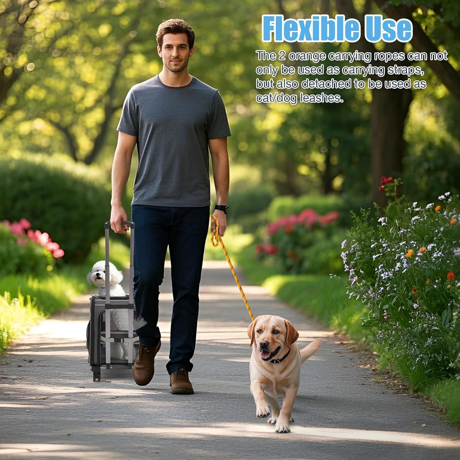 【EASY TO USE】: The dog carrier’s rollers take most of the pressure off your shoulders and hands, especially if you have a big cat. When not in use, the dog travel crate can be folded.This soft cat carrier on wheels can be trolleyed, hand carried, placed in a car seat, and is easy to assemble and organize, making it ideal for on-the-go travel.
