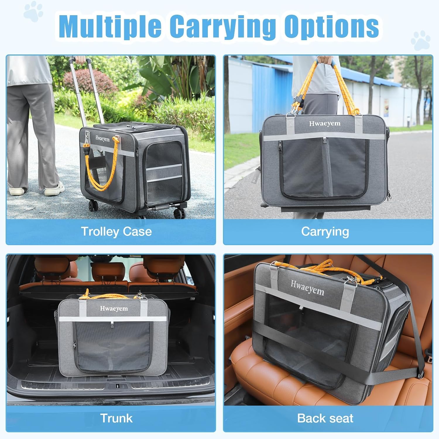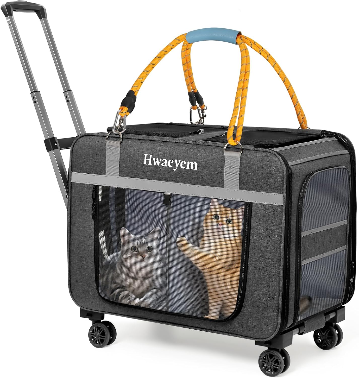 Extra Large Pet Cat Carrier with Wheels, Pet Carrier for 2 Cats or Medium Dog, 24″ X 15″ X 17″ Portable Dog Cat Crate for Large Cat, Support up to 40 Lbs, Grey