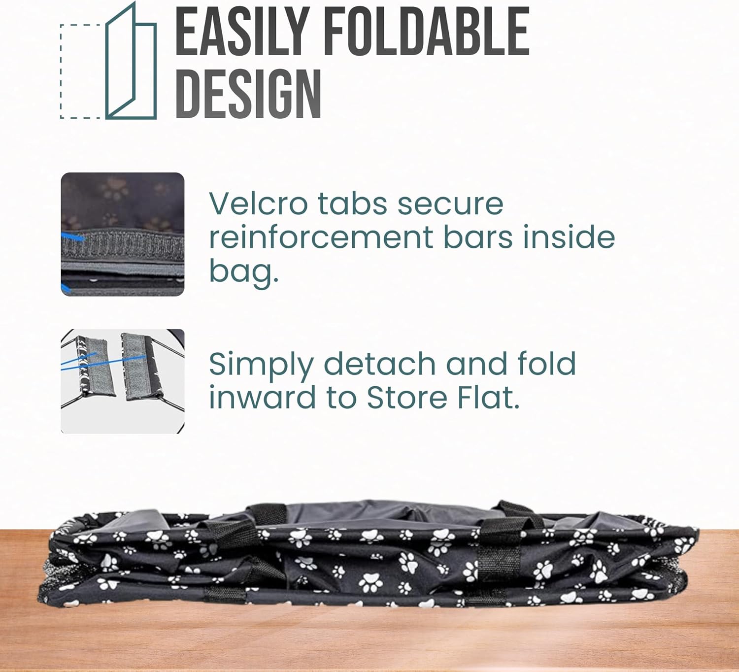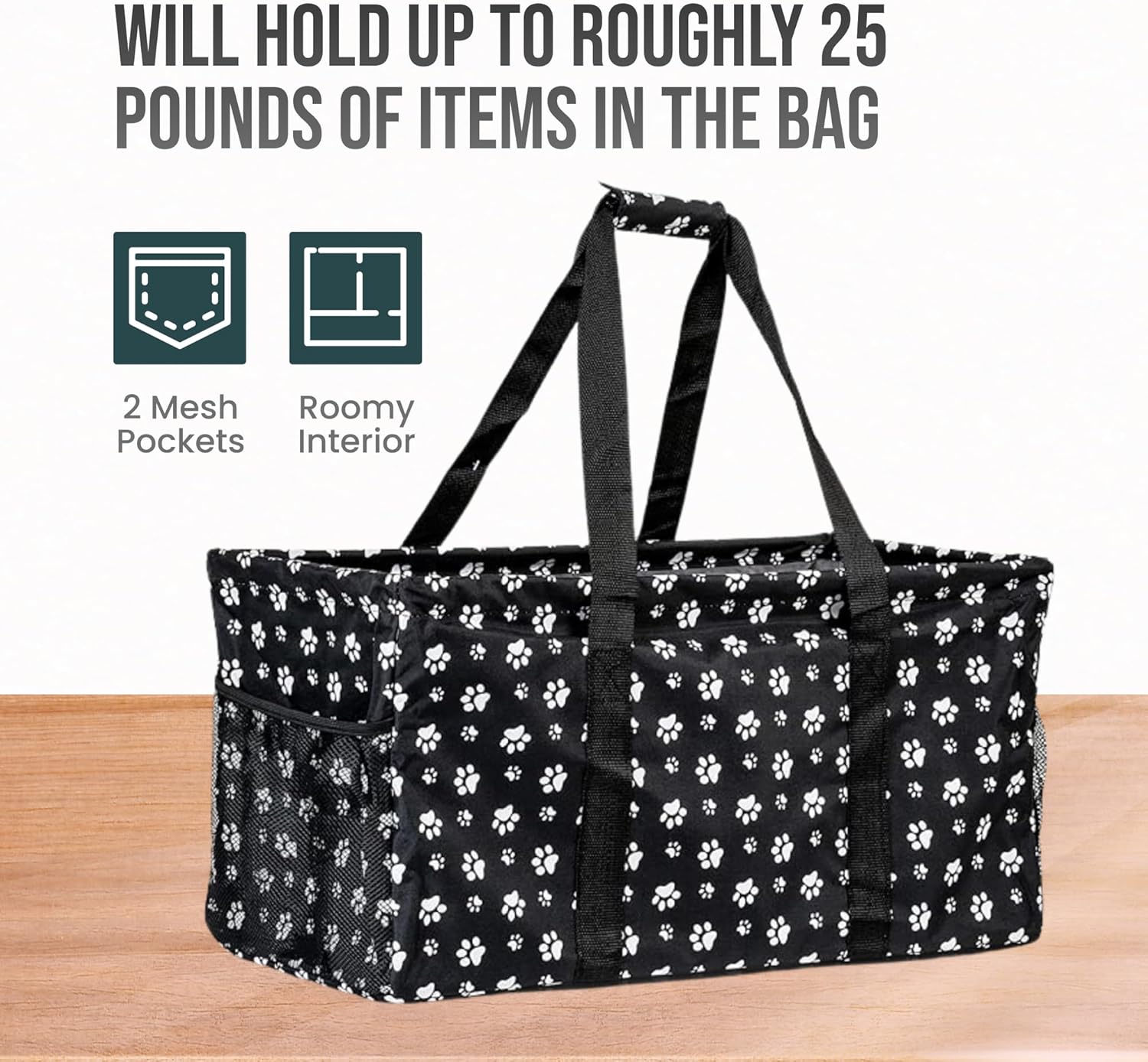 Extra Large Utility Tote Bag – Oversized Collapsible Reusable Wire Frame Rectangular Canvas Basket With Two Exterior Pockets For Beach, Pool, Laundry, Car Trunk, Storage – Dog Paw