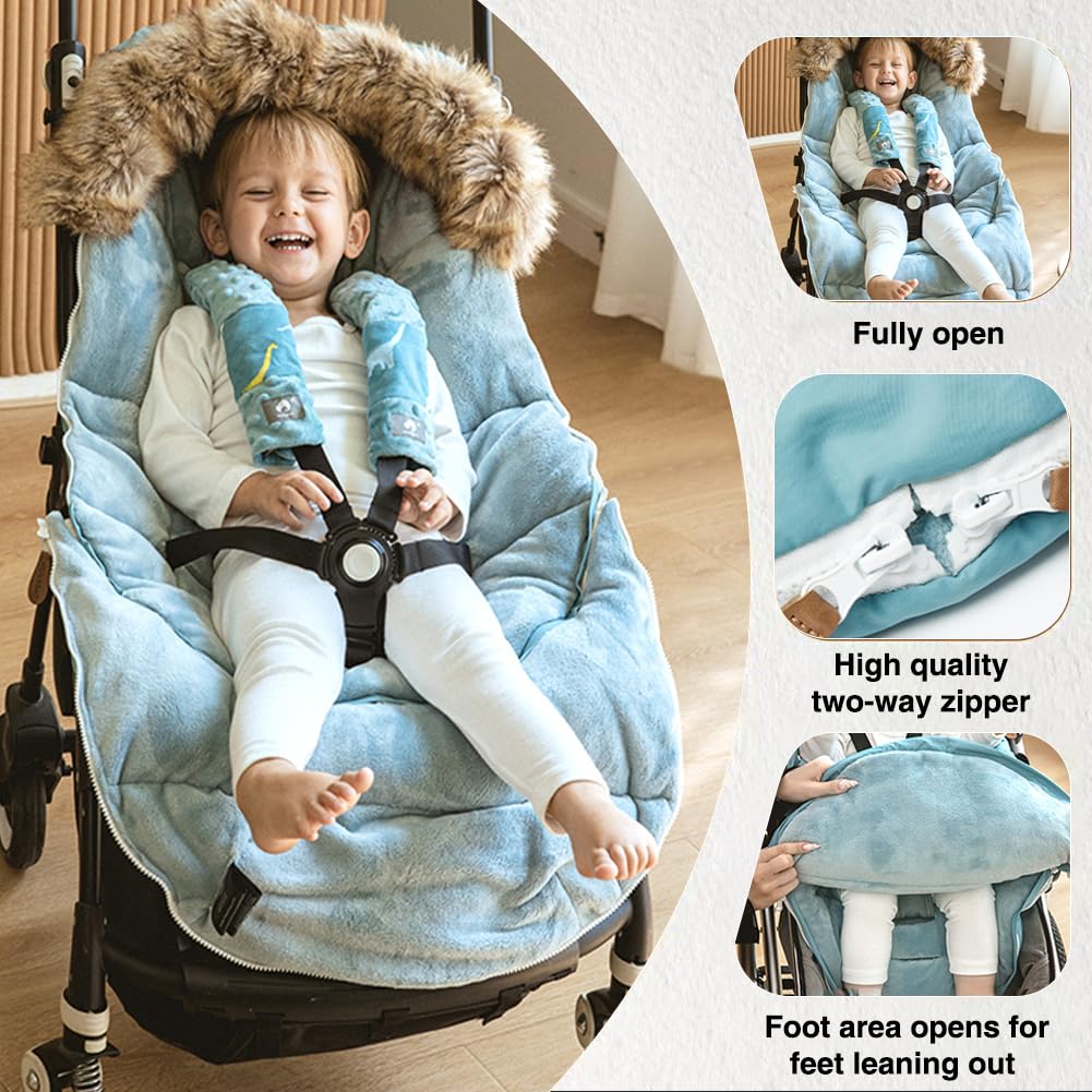 Fairy Baby Winter Cold Universal Stroller Bunting Bag for Baby Toddler-Waterproof Windproof Car Seat Cover Stroller Footmuff – Dog Outdoor Sleeping Bag with Oversized Fur Collar (Black)