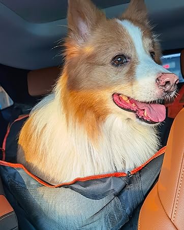 Enjoy the photo of my dog happily in the car seat cover! Hope you enjoy your car ride with your dogs using our products!