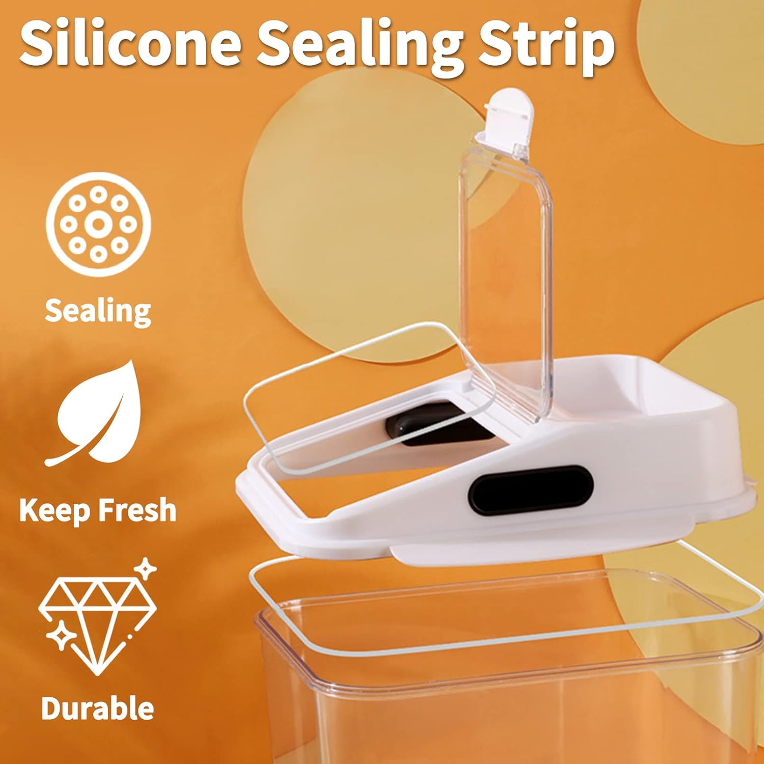 Airtight Seal: The lid of the pet food container seams use double silicone seals; the lid of the airtight pet food container has 4 seal buckles to keep out moisture which keeps the food fresh and dry for a long time