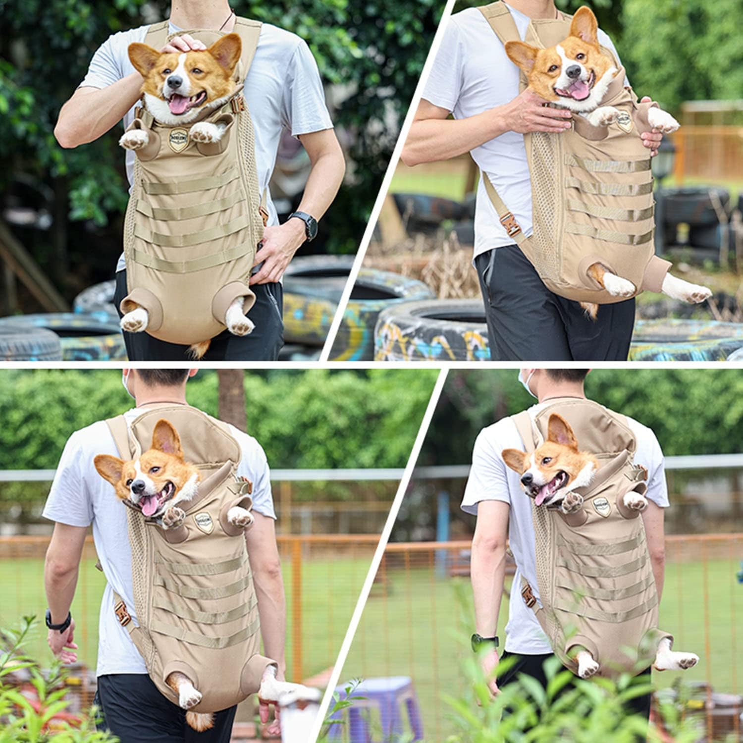 FLAdorepet Dog Carrier Tactical Backpack for Small Medium Dogs,Soft Hands-Free Legs Out Pet Front Cat Dog Carrier Backpack Travel Bag for Outdoor Traveling Hiking Camping (Large, Khaki)
