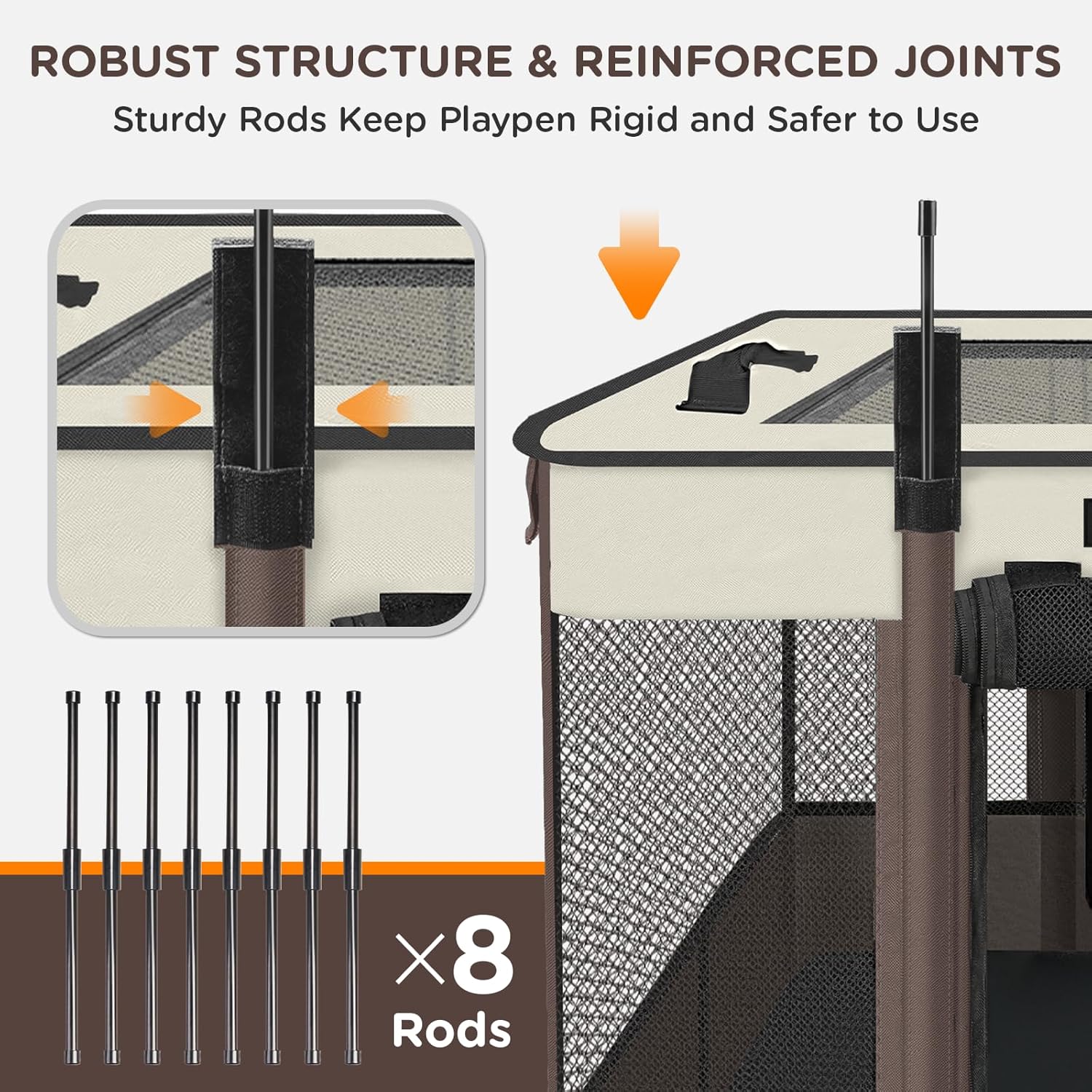 Safety & Durability: Kitten playpen is made of high-quality 600D Oxford cloth, which is wear-resistant, soft to the touch, and odorless. We have reinforced the joints and corners of the dog playpen to ensure the safety of your pet. (The portable pet playpen is lightweight, and you can place heavy objects inside the pet playpen to increase stability, but it is not suitable for use with aggressive pets)