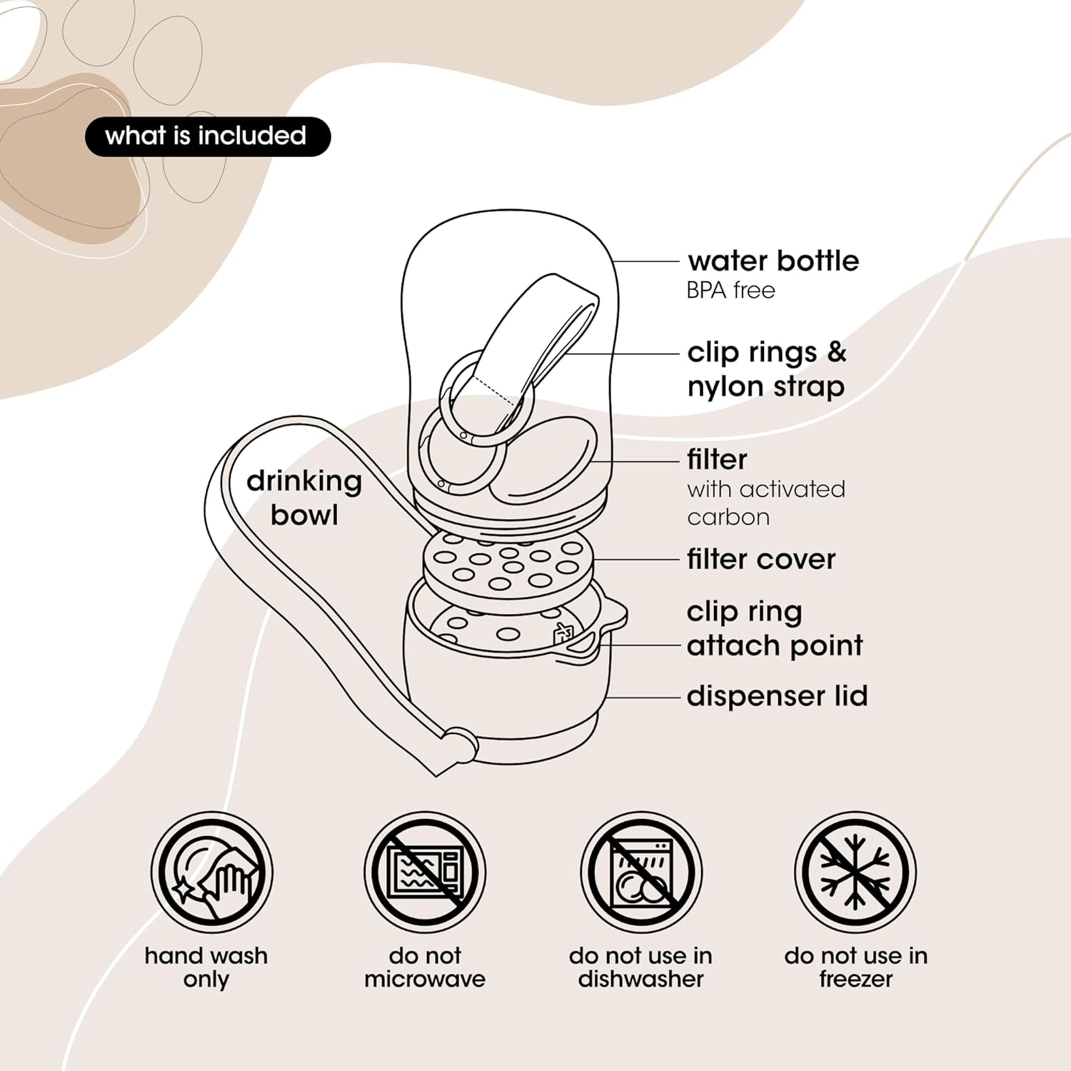 WATER FILTER ADD-ON – The water bottle comes with an activated carbon water filter that makes water drinking more enjoyable for your pet.