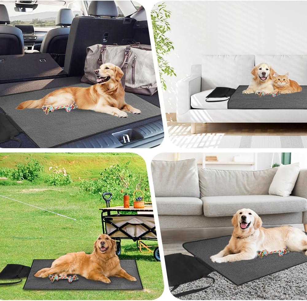 【Waterproof & Durable】:Dog travel camping blanket made of Oxford material and PU waterproof paint. The waterproof material ensures that it stays dry even on wet floors, keeping your beds, sofas and floors dry and clean at all times.