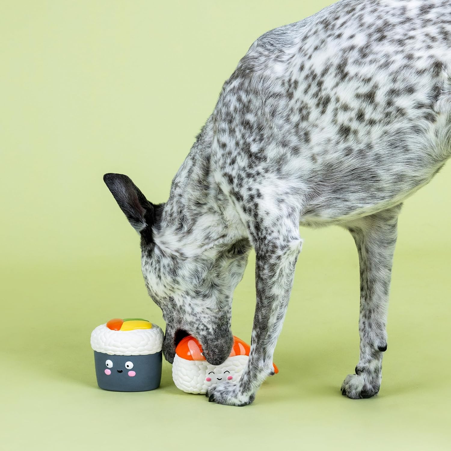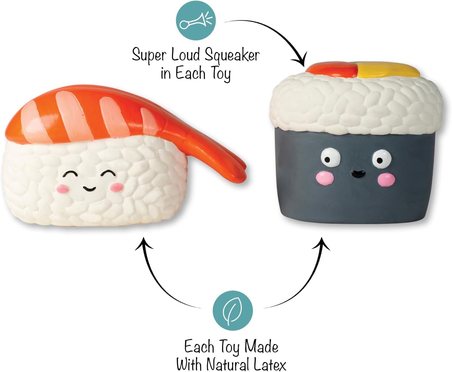 Rice, rice, baby! PetShop by Fringe Studio’s “Soymates” 2 piece latex toy set is perfect for playtime, anytime. Made with natural latex and a super loud squeaker in each toy, this set was designed with interactive play in mind. Whether you squeak or toss them, this duo will let the good times roll for your pup. Great for all-sized dogs and not intended for aggressive chewers.