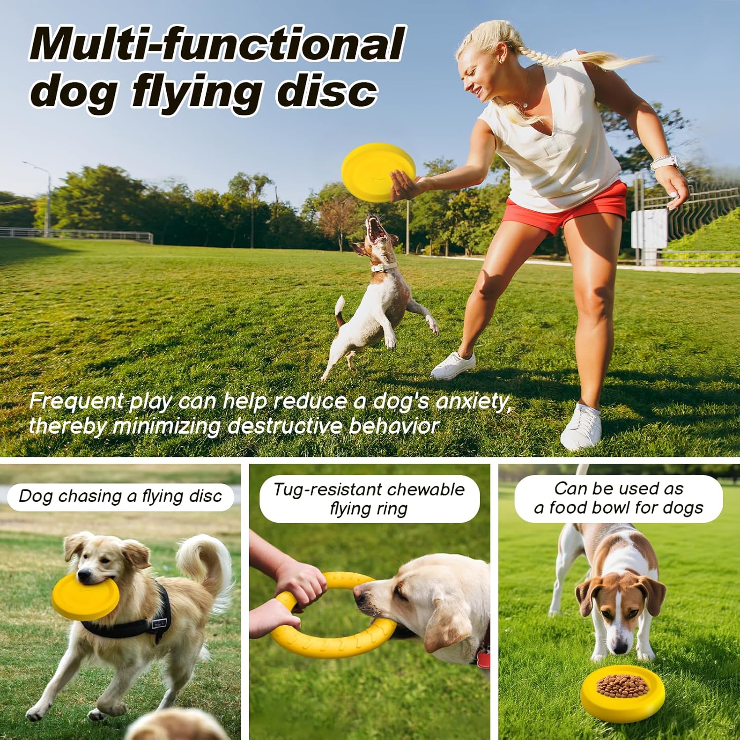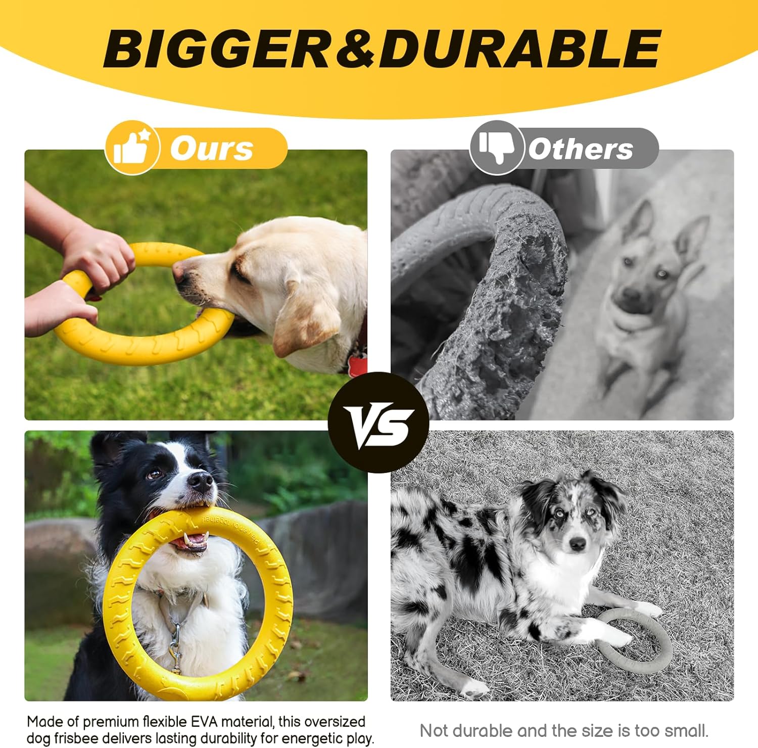🥣 Multi-Functional Design – The 9-inch disc doubles as a food/water bowl (grooved edges prevent spills). The 12-inch ring is perfect for tugging with dog.