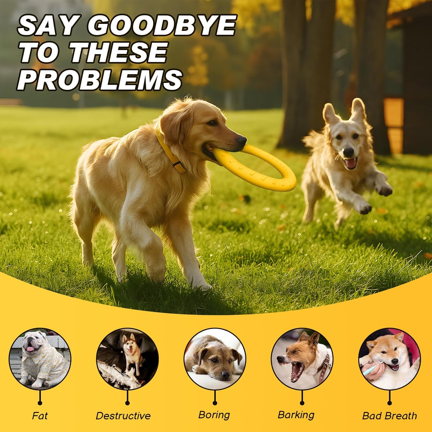 Frisbee dog Toy – 9 Inch Flying Disc & 12 Inch Ring Set, Dog Frisbee for Aggressive Chewers, Durable Tough Chew Toys for Large Breeds, Water Floating Fetch Toys for Throwing/Catching (Yellow)