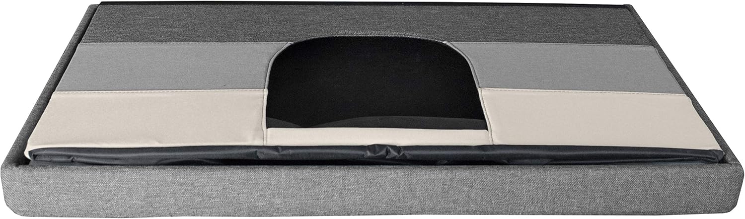 Achieve the ultimate combination of household harmony with Furhaven Collapsible Ottoman Footstool Pet House. Seamlessly integrate your pet’s hideout into your daily life in both style and comfort. Featuring a simple but innovative pop-up design, the collapsible pet house lets your favorite furball be in the middle of the action without being the center of attention! Available in various color options to blend with a variety of home decors, these innovative cubbies are the perfect hideaway for curious cats and shy dogs. Inside the easy-care canvas walls there is a private space and a soft fleece-covered base (removable and washable) for your pet’s comfort. All you need is their favorite toy and a soft blankie to achieve pet purr-fection! (Optional hanging ball toy is included for your feline friends – or pups who are feline-inclined.) This house’s padded top provides extra insulating comfort by trapping your pet’s natural body heat to create a cozy haven for your dog or cat. Not just for your pet – this ottoman is a great spot to rest your feet and is sturdy enough to support 130-pounds of static weight! Going on a family trip? This pet house is easy to take along and creates an instant and familiar space for your dog or cat when boarding or visiting friends. Exterior is hand wash only. The pet house sets up in seconds by simply unfolding the walls, inserting the base panel and placing the lid on top. Pro tip! Place your pet’s favorite soft object or blanket in the footstool for extra padding and to encourage use!