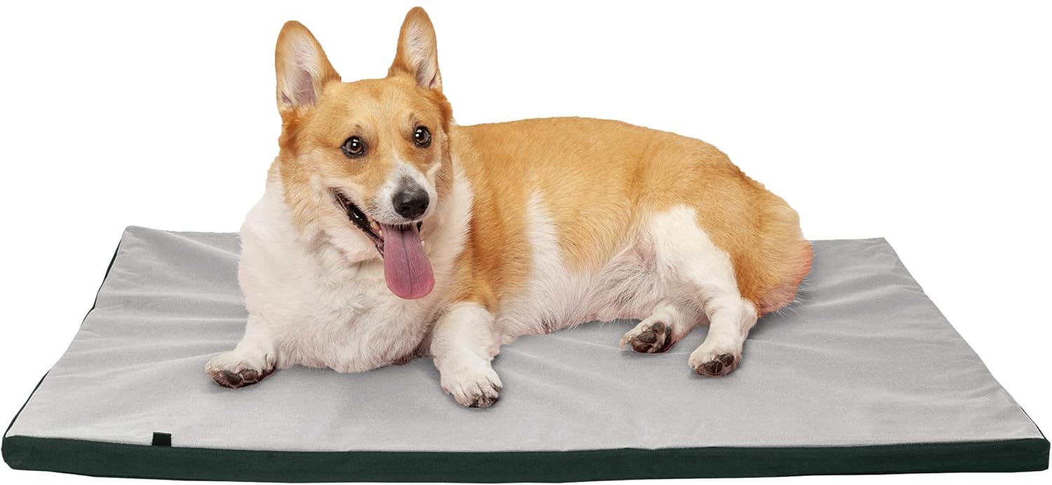 Furhaven Water-Resistant Dog Bed for Large/Medium Dogs w/ Removable Washable Cover, Perfect for Crates & Kennels, For Dogs Up to 70 lbs – Two-Tone Reversible Crate Pad – Green/Gray, Large