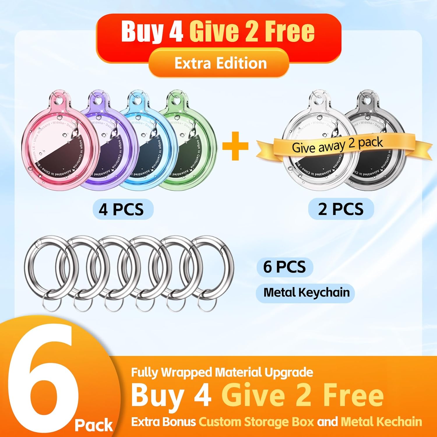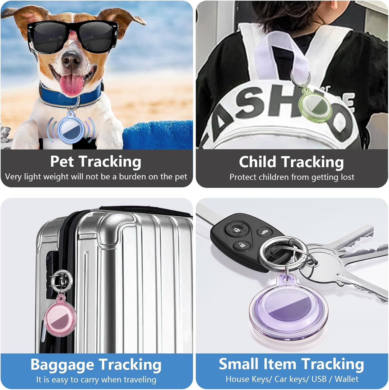 Great Value &Support :Air Tags- 4 Pack Holder (Purple, Blue, Green ,Pink)+ 2-Pack Air Tags- 2 Pack Holder (White Black), all with metal keychains (6 Total); Enjoy a 1-year repair period; Our team offers 24-hour support for any questions