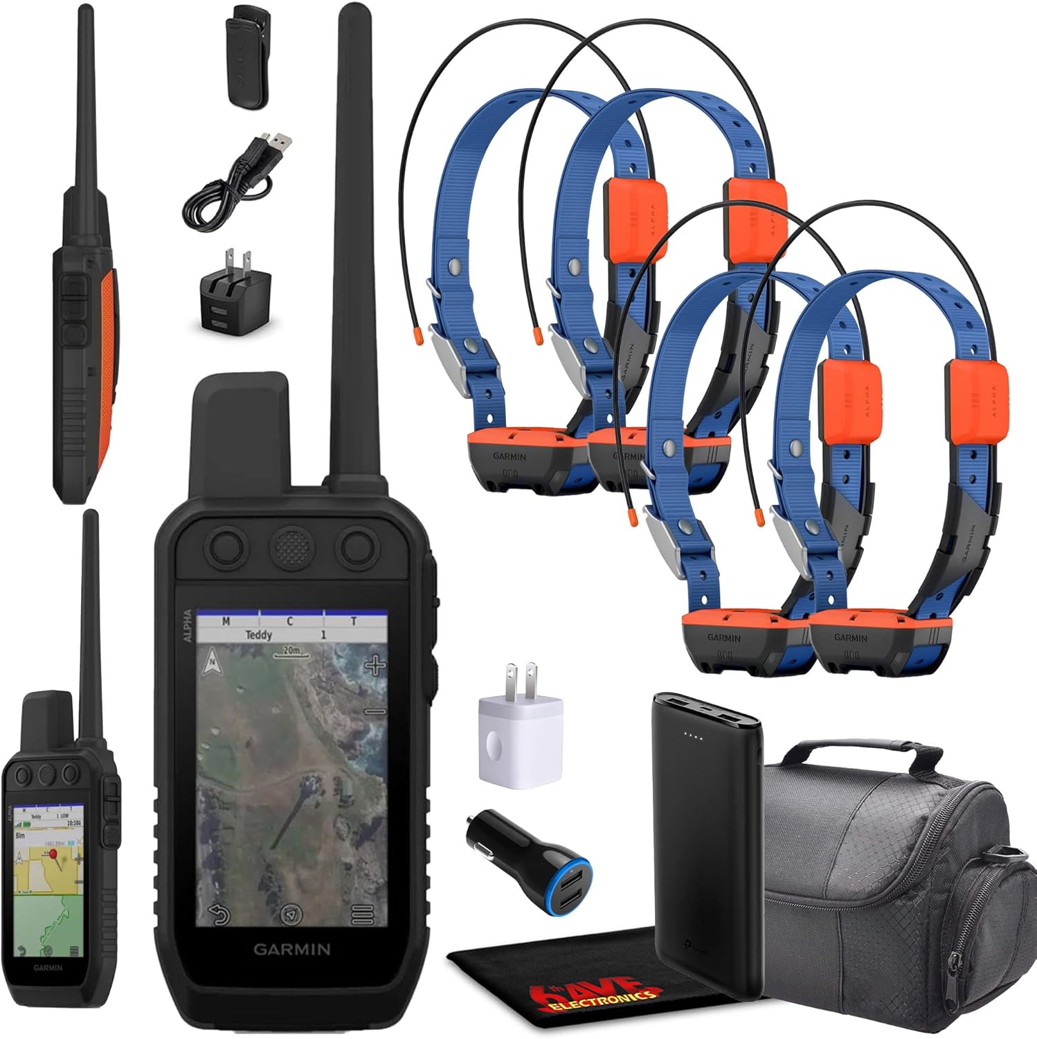6ave Bundle Includes: Garmin Alpha 300 Handheld, Dog Tracking & Training Handheld + 4x Garmin Alpha T20 Tracking Collar For Dogs + USB Adapter + USB Car Adapter + Microfiber Cleaning Cloth + P-Bank Battery + Field Travel Bag