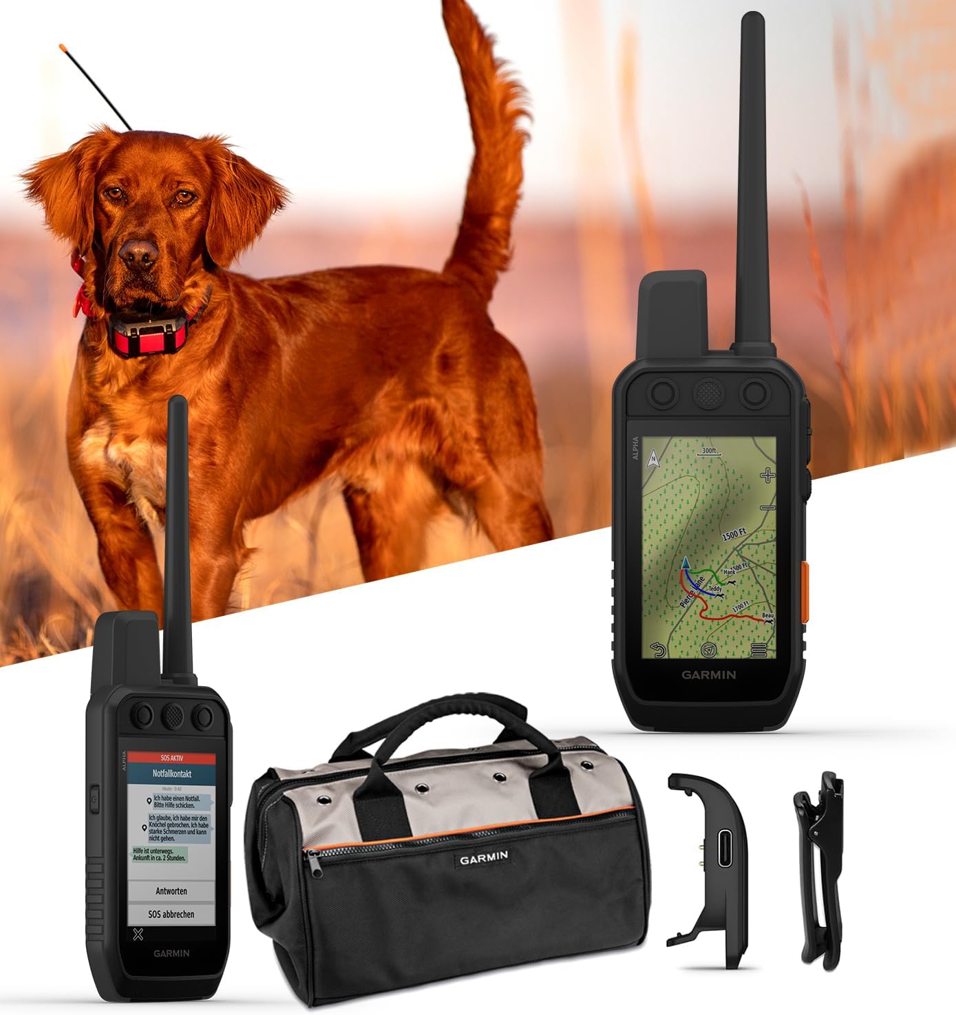 “Build a strong connection and strong bond with your sporting dogs with the powerful Garmin Alpha 300 & 300i dog tracking and training handhelds Sagebrush plateaus, rolling prairies, dense hardwoods, rocky ridges no matter where you hunt, you and your dogs need reliable gear. Track and train your dogs in the field with the Alpha 300 handheld, featuring a new vivid 3.5” touchscreen and user-friendly 6-button design. Features The user-replaceable battery lasts up to 55 hours or 50 hours with inReach technology enabled. Save time at the start of every hunt with groups of dogs and people that match how and whom you hunt with. See when a dog is “treed” or “on point.” Pair with the Garmin Explore smartphone app to review the entire hunt and more. Easily pair the handheld to select T and TT series collars. Store up to 250 dogs, making switching active collars in the field easy. See critical hunt metrics, such as distance, speed, and time afield, right on the dog info screen. Access multiple global navigation satellite systems for better service in challenging environments. This simple, at-a-glance tracking shows which direction and how far away your dogs are. Get detailed views of terrain contours, topographic elevations, summits, parks, and more. Subscribe to Outdoor Maps+, and get public land information, enhanced topographic maps, landowner names, and more. The barometric altimeter helps you accurately monitor ascent and descent. Navigate with the tilt-compensated 3-axis electronic compass Added Features of the Alpha 300i Messages, SOS alerts, and tracking are transferred via the global Iridium satellite network. Get detailed weather reports on the Alpha 300i handheld with the Garmin Explore app. Pair with the Garmin Messenger smartphone app for fast, easy satellite messaging. Mapshare Trip Sharing Page provides friends and family an easy way to see your progress, view your GPS location, and exchange messages during your trip.”