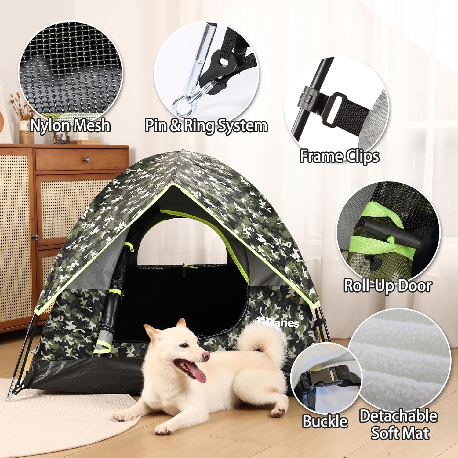 GDanes Camouflage Dog Tent House – Portable Indoor/Outdoor Dog Bed with Soft Pad for Large Dogs, 42 x 42 x 32 Inches