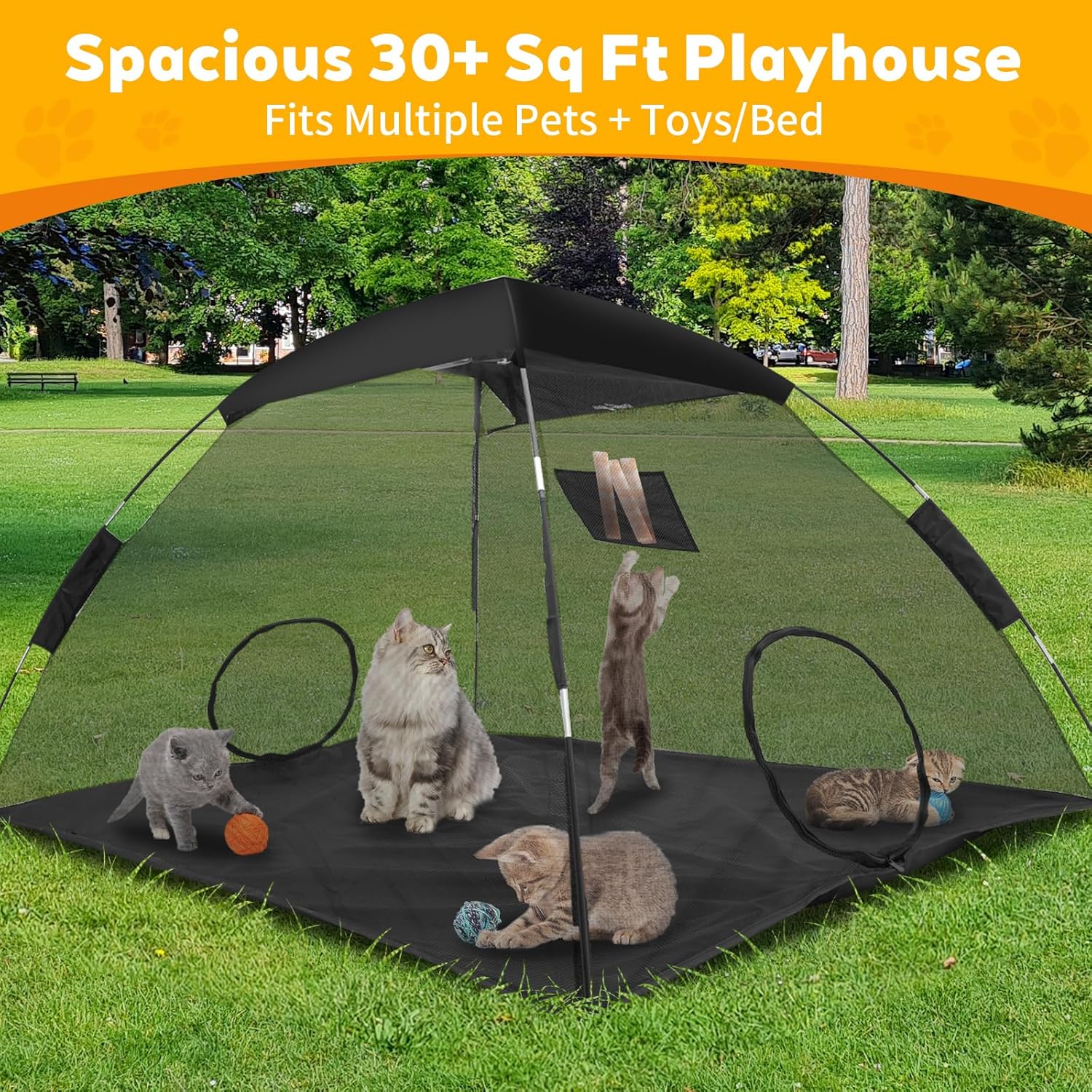 Spacious 30+ SQ FT Play Zone – Designed for multi-cat households with their beds, toys & essentials. Extra-wide 21.6″ zipper door – 15% larger than standard for effortless access