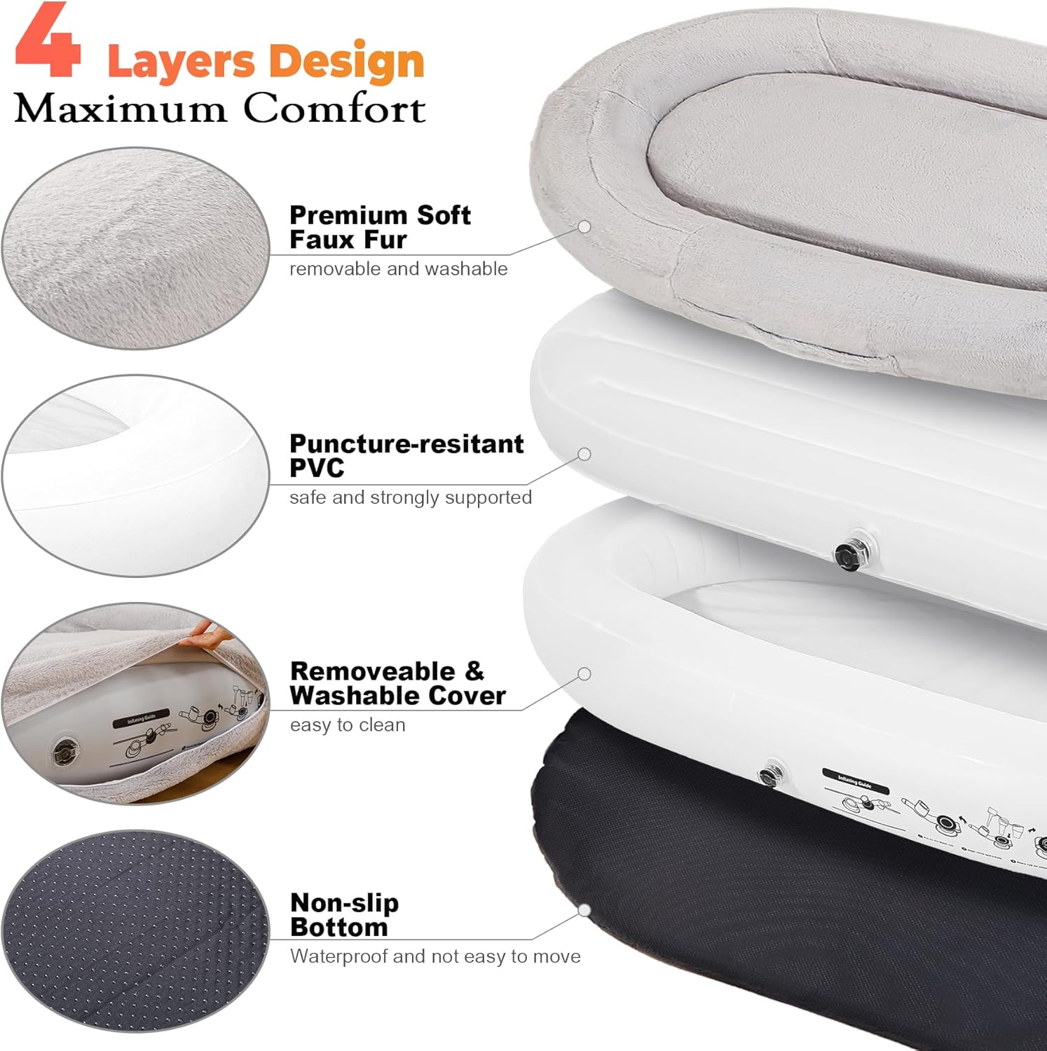 Giant Human Dog Bed, Inflatable Supportive Dog Bed for Adults & Pets, Waterproof Lining (Light Grey, 71″x45″x9.8″)