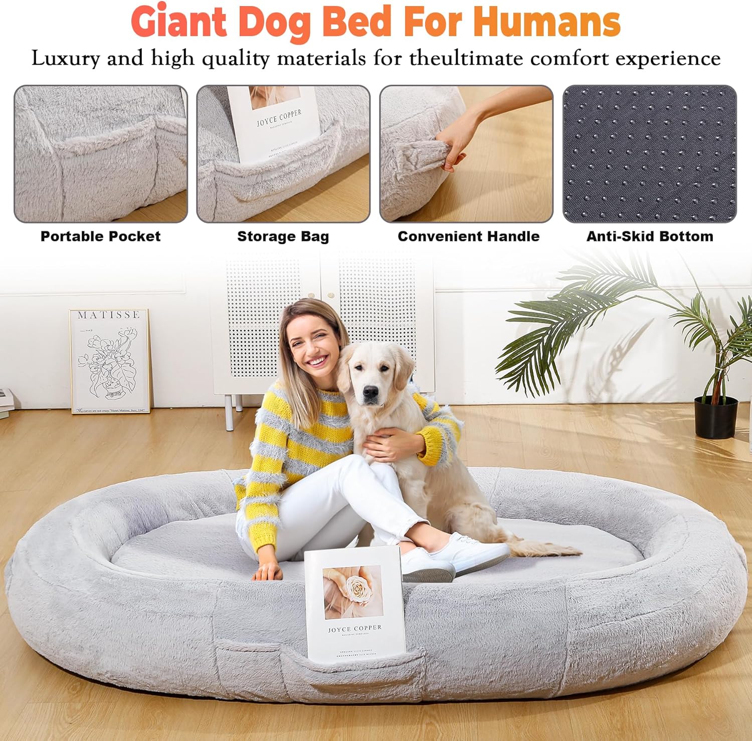 Versatile and Stylish – Our human dog bed transcends singular use, effortlessly complementing any interior aesthetic. It seamlessly integrates into bedrooms, living rooms, and even offices, elevating their allure. Whether you seek a cozy napping nook or a tranquil sleep surface, our bed meets your desires. Plus, its handy side carrying handle ensures you can bring comfort and relaxation with you wherever you go