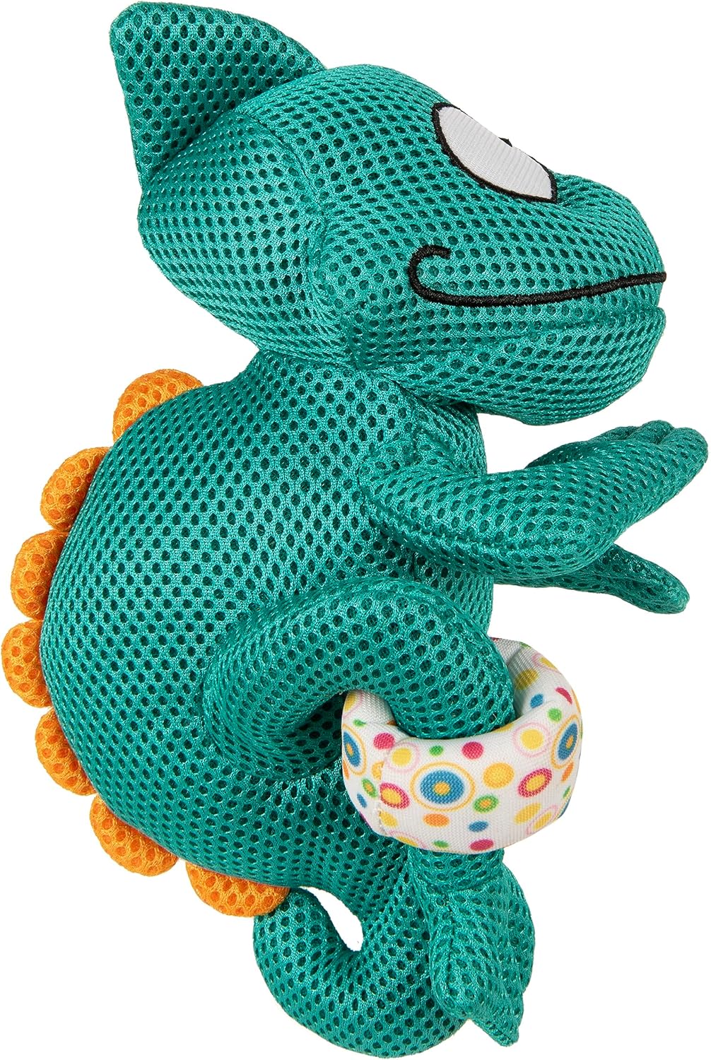 goDog Double Chew Guard Mesh Amphibianz Chameleon Squeaky Dog Toy – Teal, Large