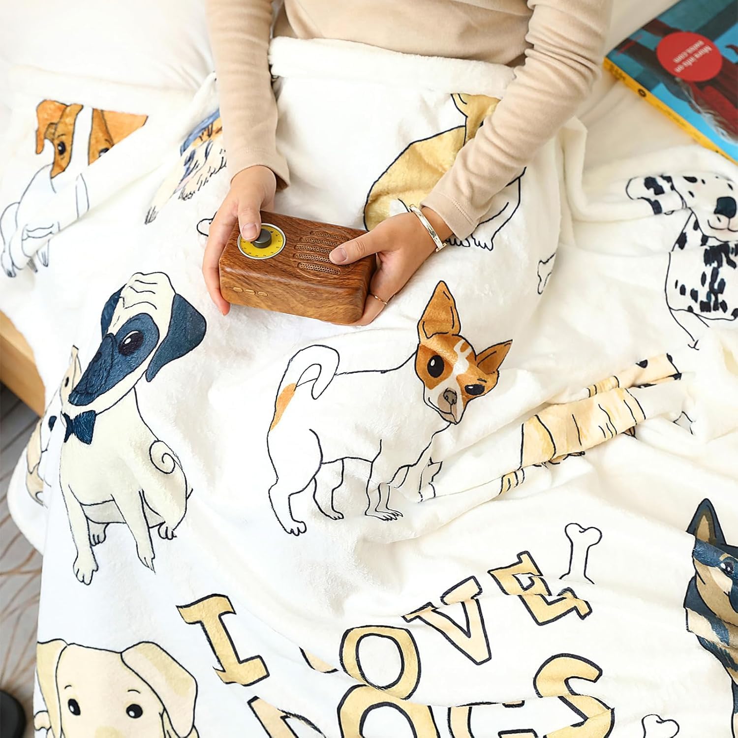 Versatile Use for All Dog Lovers This lightweight and stylish blanket with dogs on it is ideal for cozying up on the couch, adding a playful decorative touch to your bed, or taking along for travel, camping, and outdoor adventures.