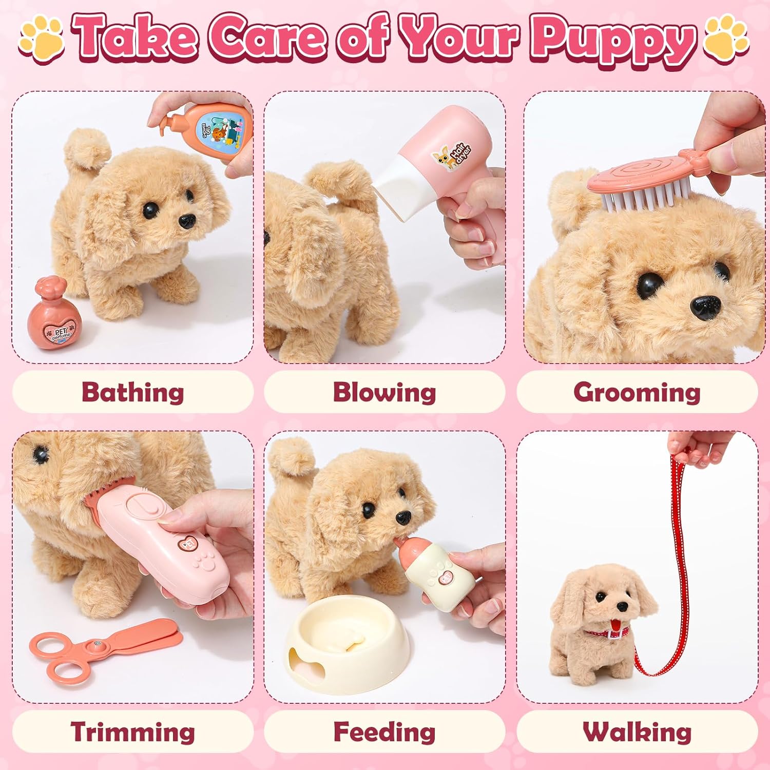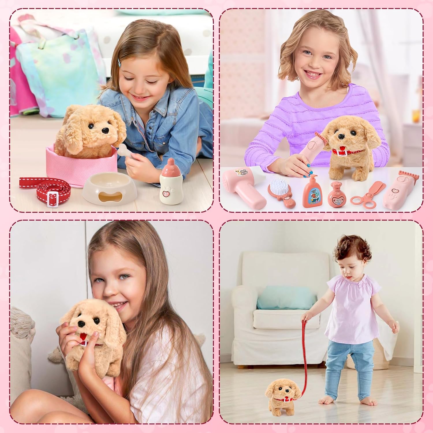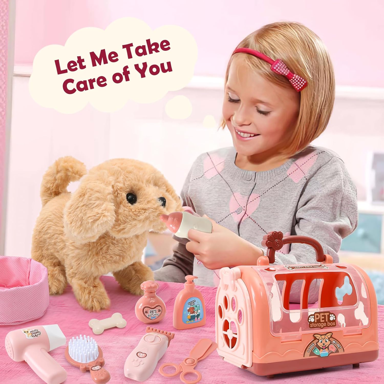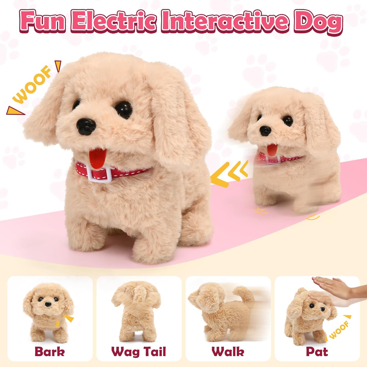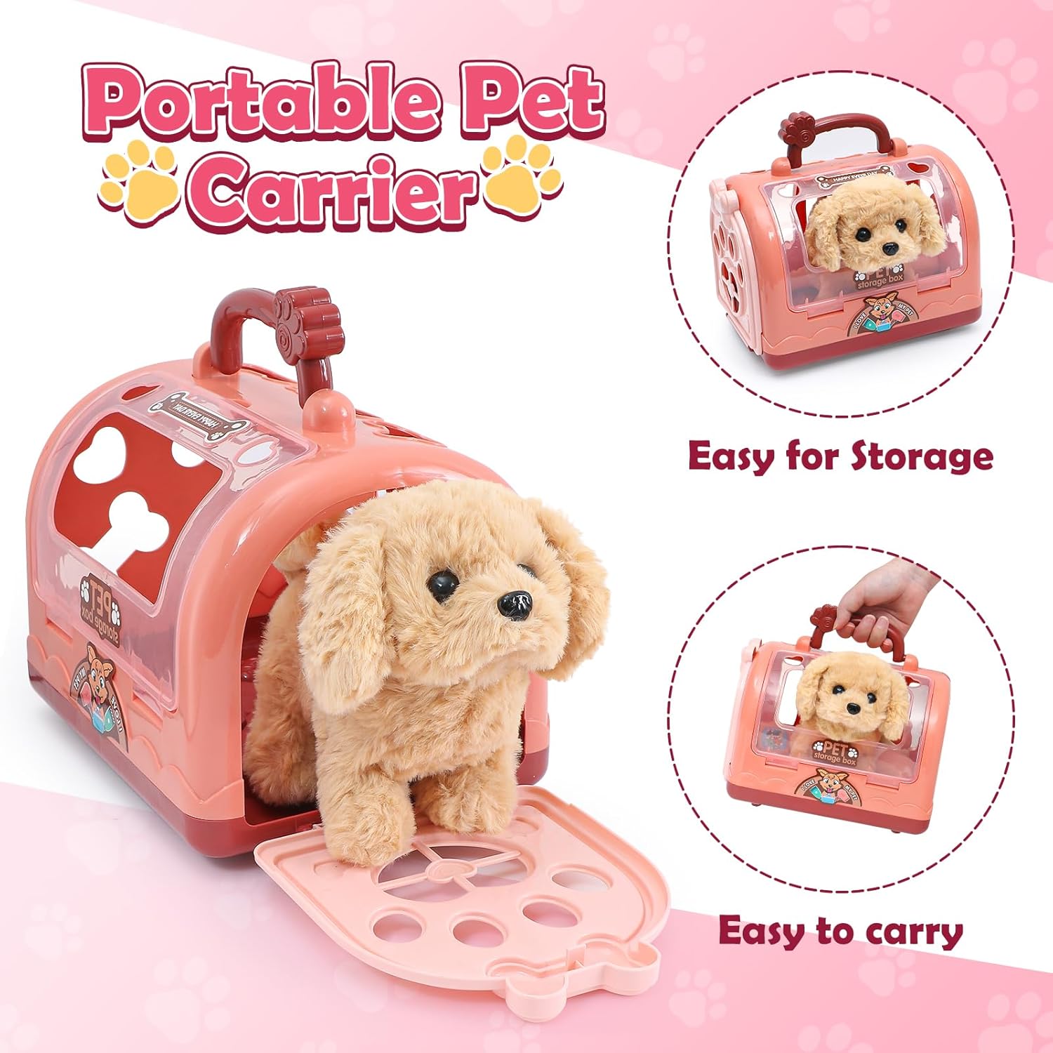 Golray Dog Toys for Kids Girls, Electronic Interactive Walking Barking Dog with 12 Pcs Carrier & Accessories Toddler Girl Toy Dog Puppy Pet Care Pretend Play Set, Birthday Gift for Little Girl 3 4 5 6