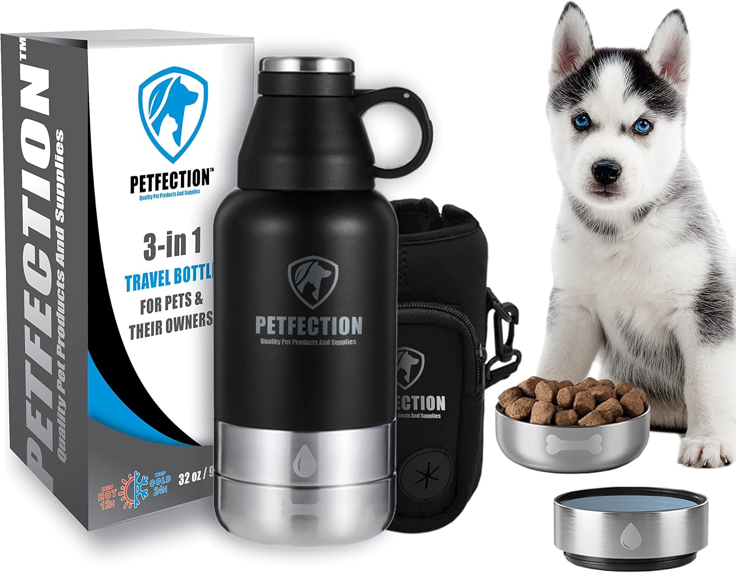 LARGE CAPACITY BOTTLE, STRAP AND CARABINER INCLUDED: the bottle comes in three convenient sizes 12 oz, 16 oz, and 20 oz, so you can find the best fit for your furry friend; bottle includes carrying strap and carabiner clip making it easy to carry on the go