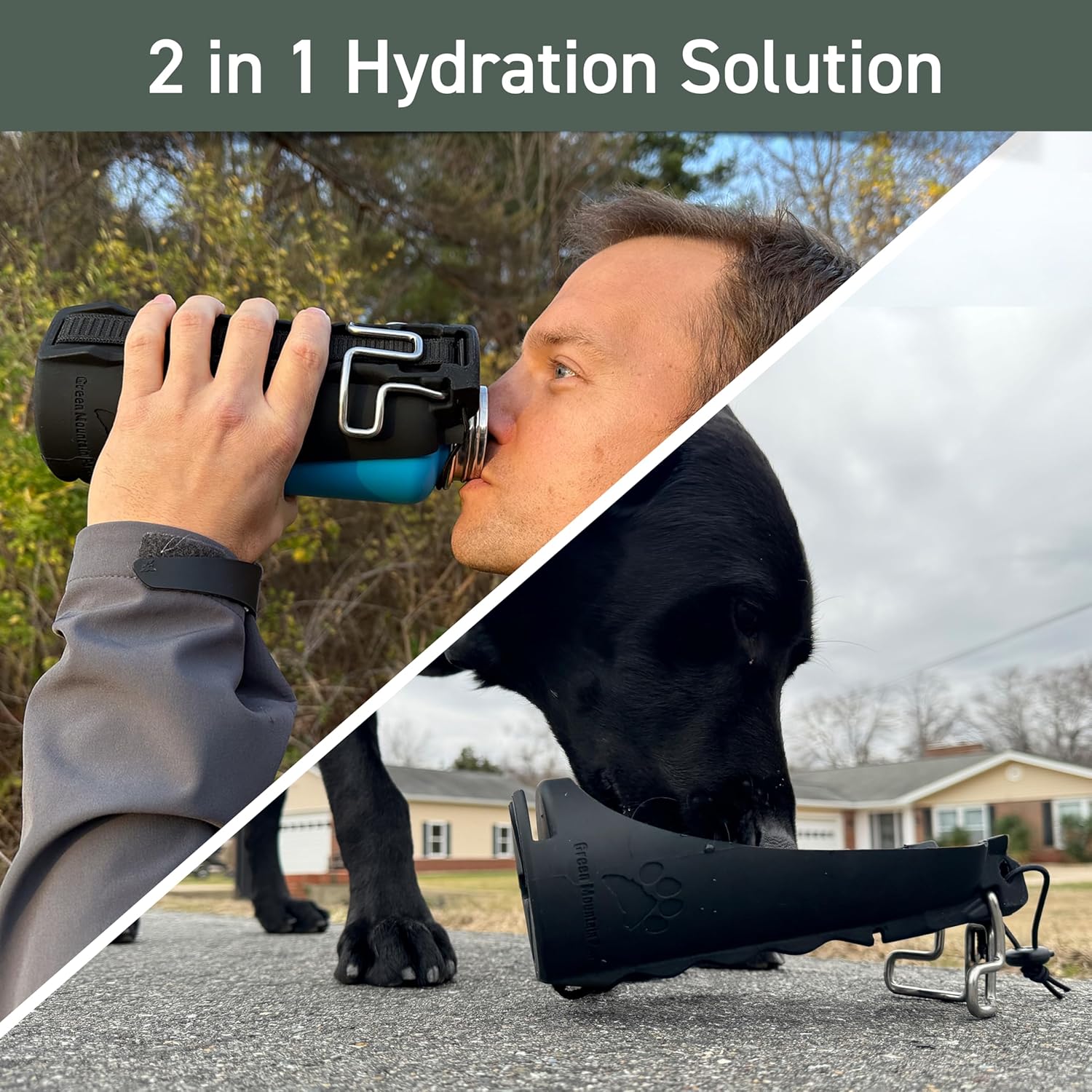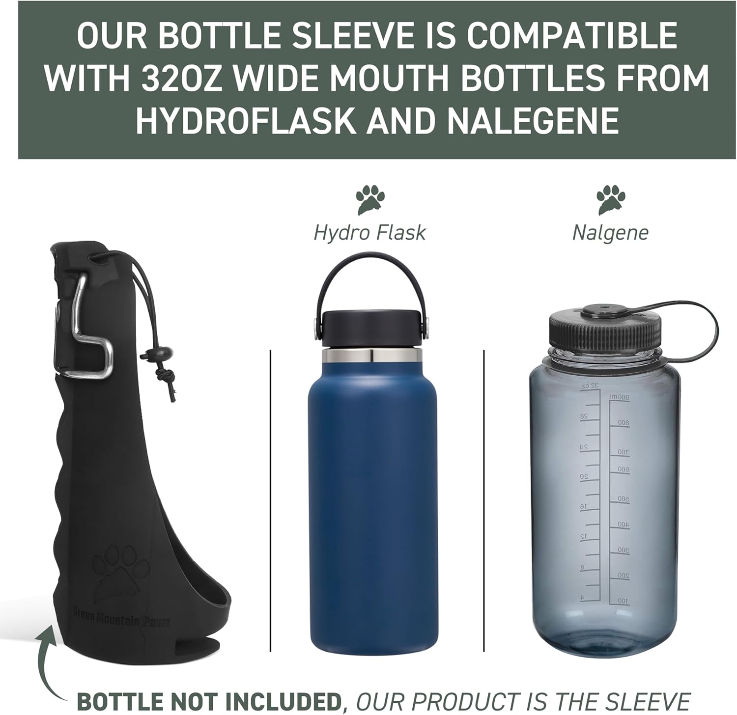 Green Mountain Pawz- Portable Dog Water Bottle Sling Transforms into Dog Travel Bowl, Compatible with 32 oz Wide Mouth Bottles from Hydroflask and Nalgene, Hiking Portable Dog Water Bottle